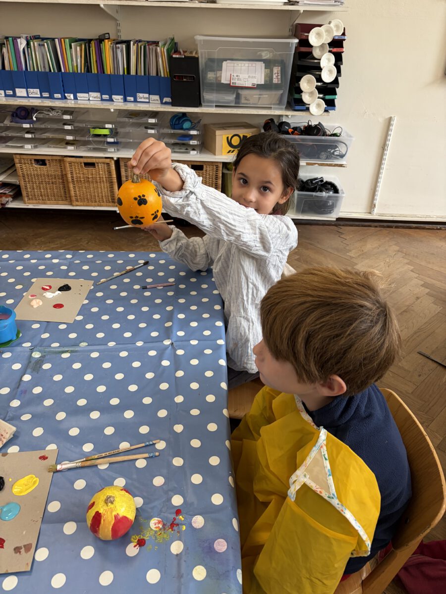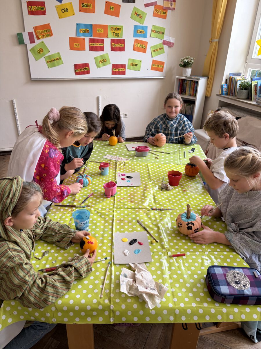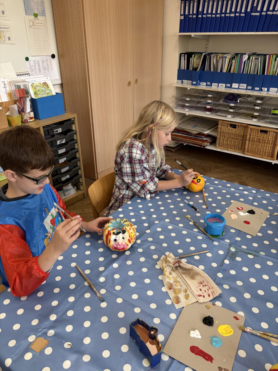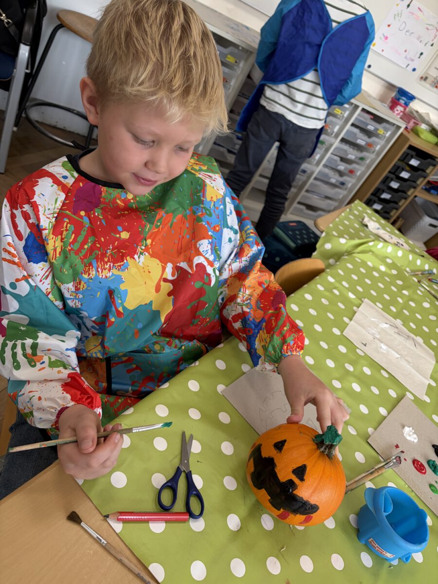 Zur Feier des letzten Tags im Spooktober hat die Dackel-Klasse uns mit ihren Mal-Künsten ordentlich das Gruseln gelehrt! Die Kürbisse dafür waren ein Geschenk des Hof-Averweg in Münster Albachten. Nach der ruhigen Bastelstunde können wir gewiss sagen, dass die Ergebnisse für sich sprechen!