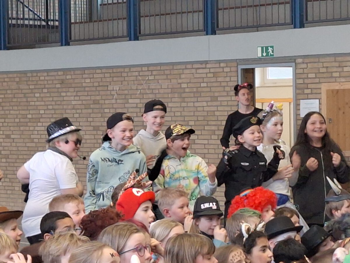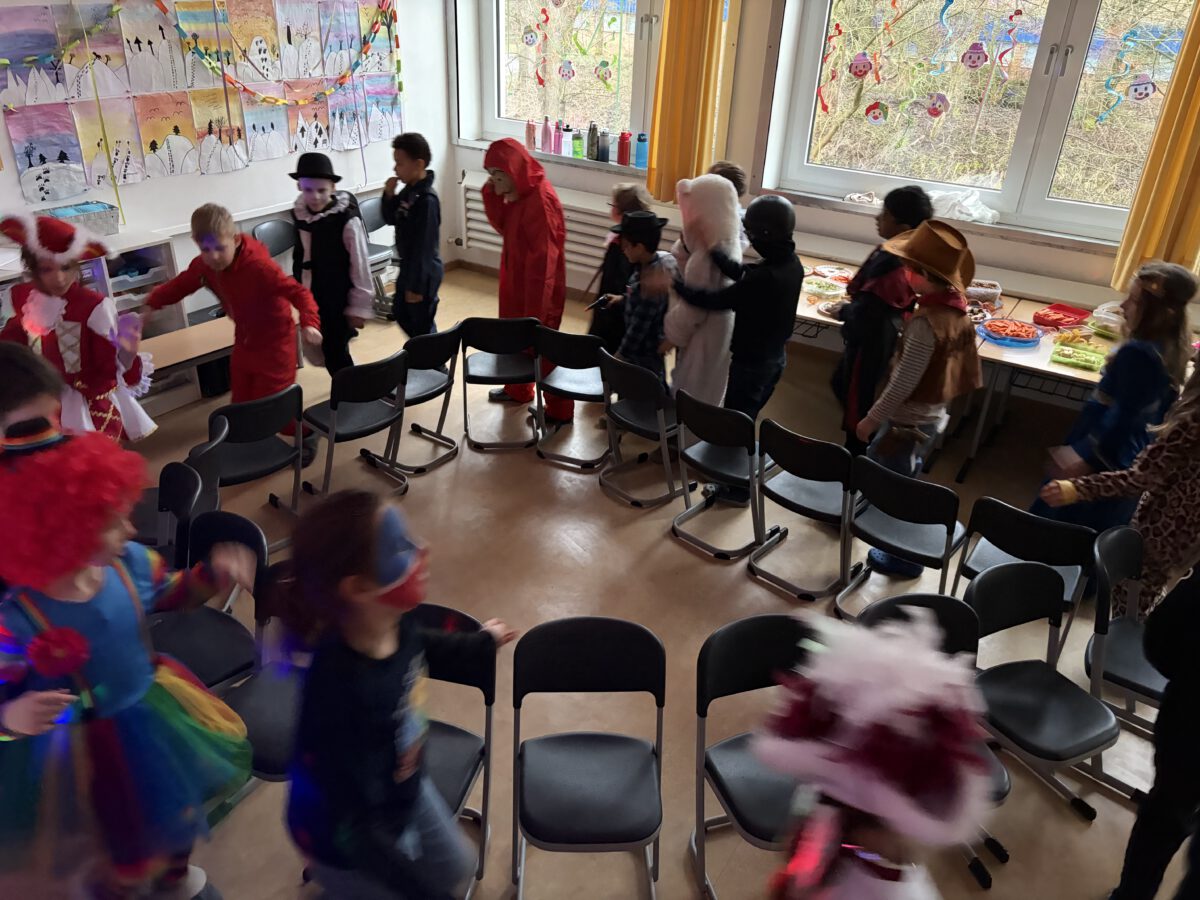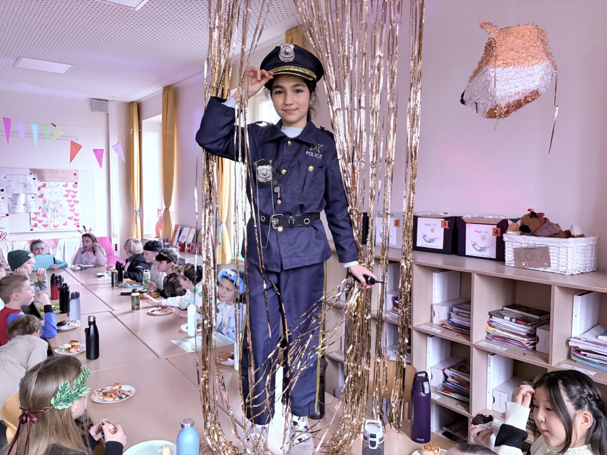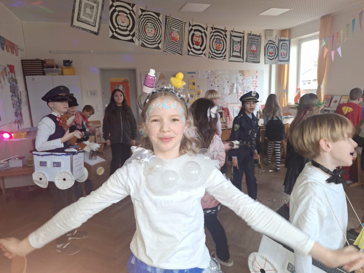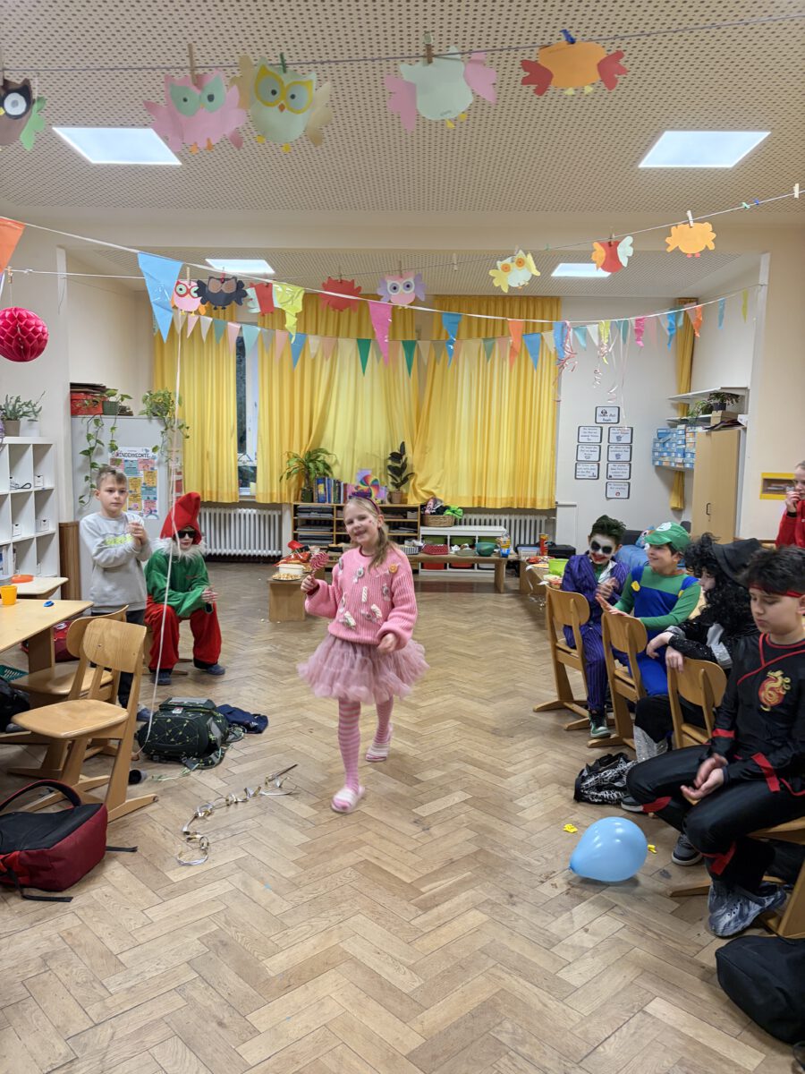 Schon früh am Morgen tummelten sich Ritter, Marienkäfer, Zebras und zahlreiche andere bunte Wesen auf dem Schulhof zum kunterbunten Treiben. Fröhlich und bester Laune feierten die Jecken der MCS in ihren Klassen Karneval. Mit viel Temperament gab es Spiele im Stuhlkreis, Foto-Sessions, Kostümwettbewerbe und Leckereien vom Karnevalsbuffet. Zur Pause schallte heitere Musik über den Schulhof und die Polonäse durch das Schulgebäude fand ihr Ende in einer tanzenden Schülerschar auf dem Hof. In der Turnhalle hatte sich eine Jury beisammen gefunden, um unter der Leitung von Herrn Philipp die besten Kostüme der MCS zu küren. Am Mikrofon unterstützen ihn sehr professionell Clara und Ariana und sorgten für ausgelassene Stimmung. Am Ende tanzte Groß und Klein zur Disco. Anschließend wurde in der OGS weiter gefeiert. Das war ein rundum heiterer Tag.