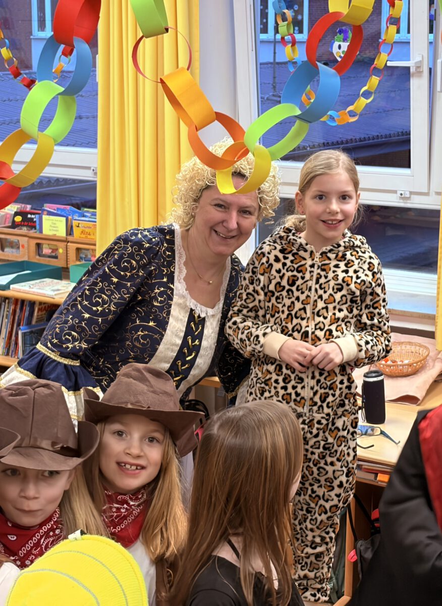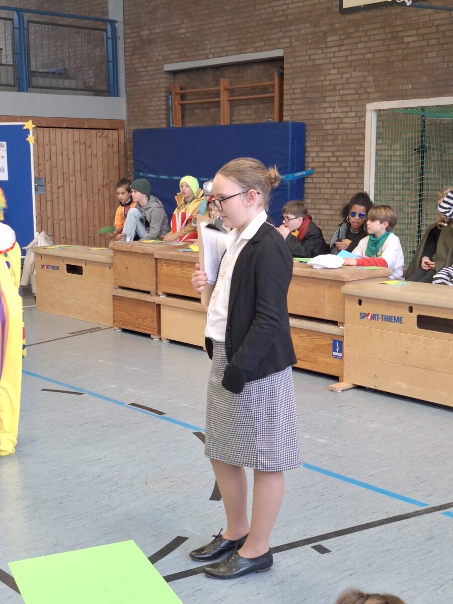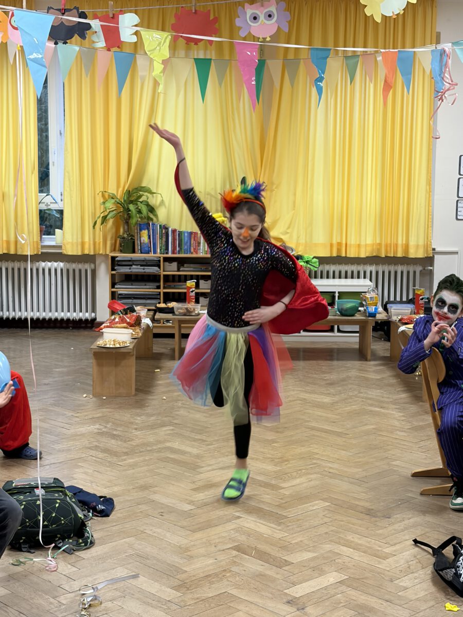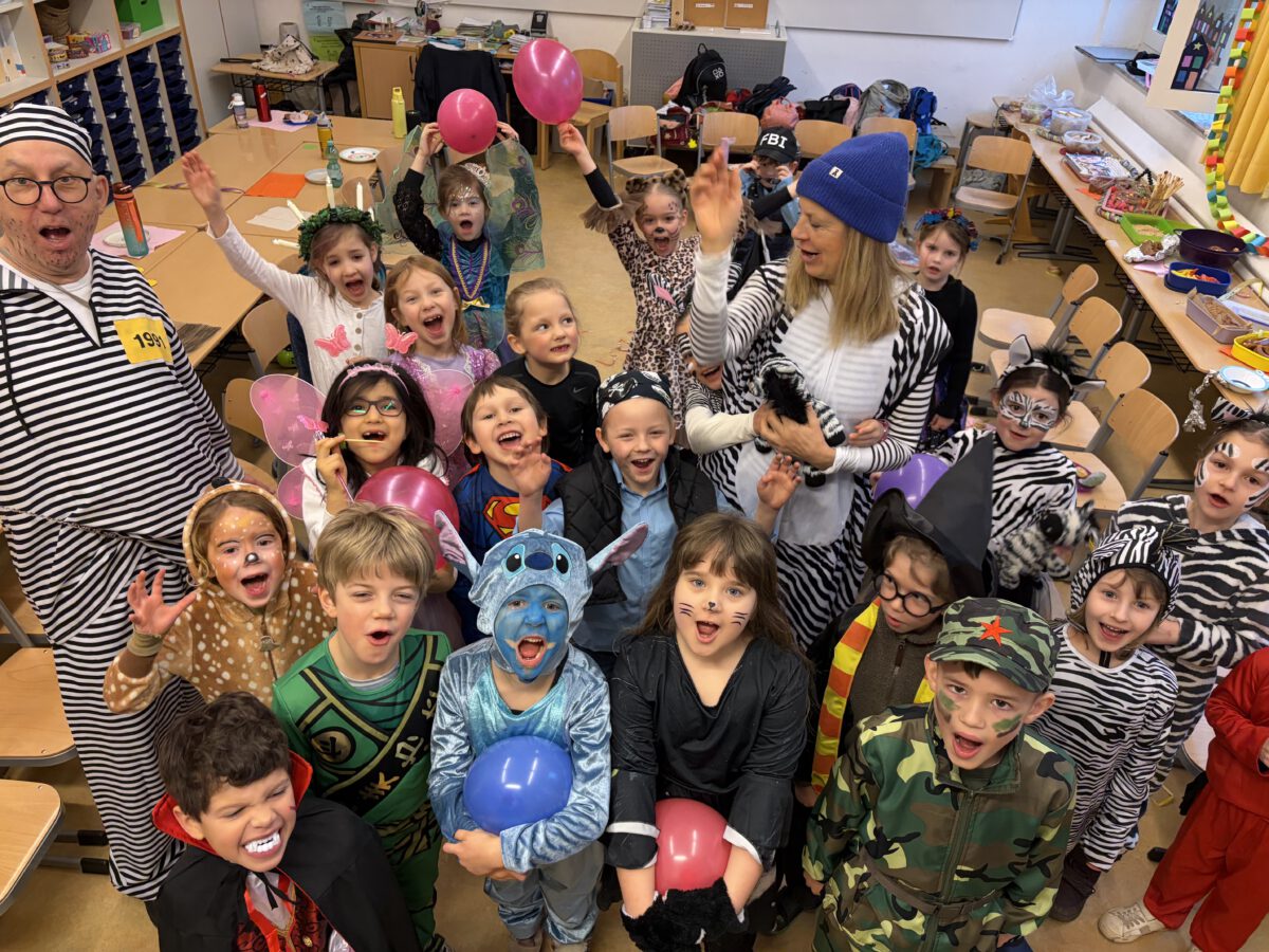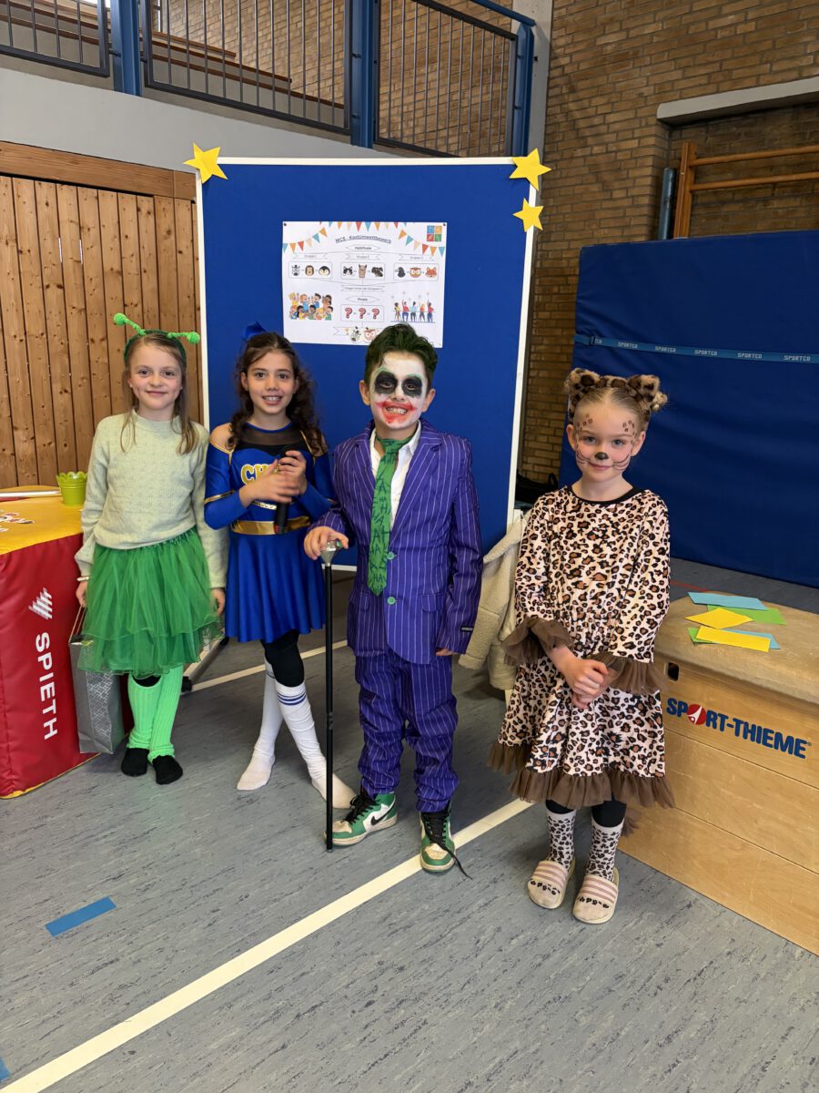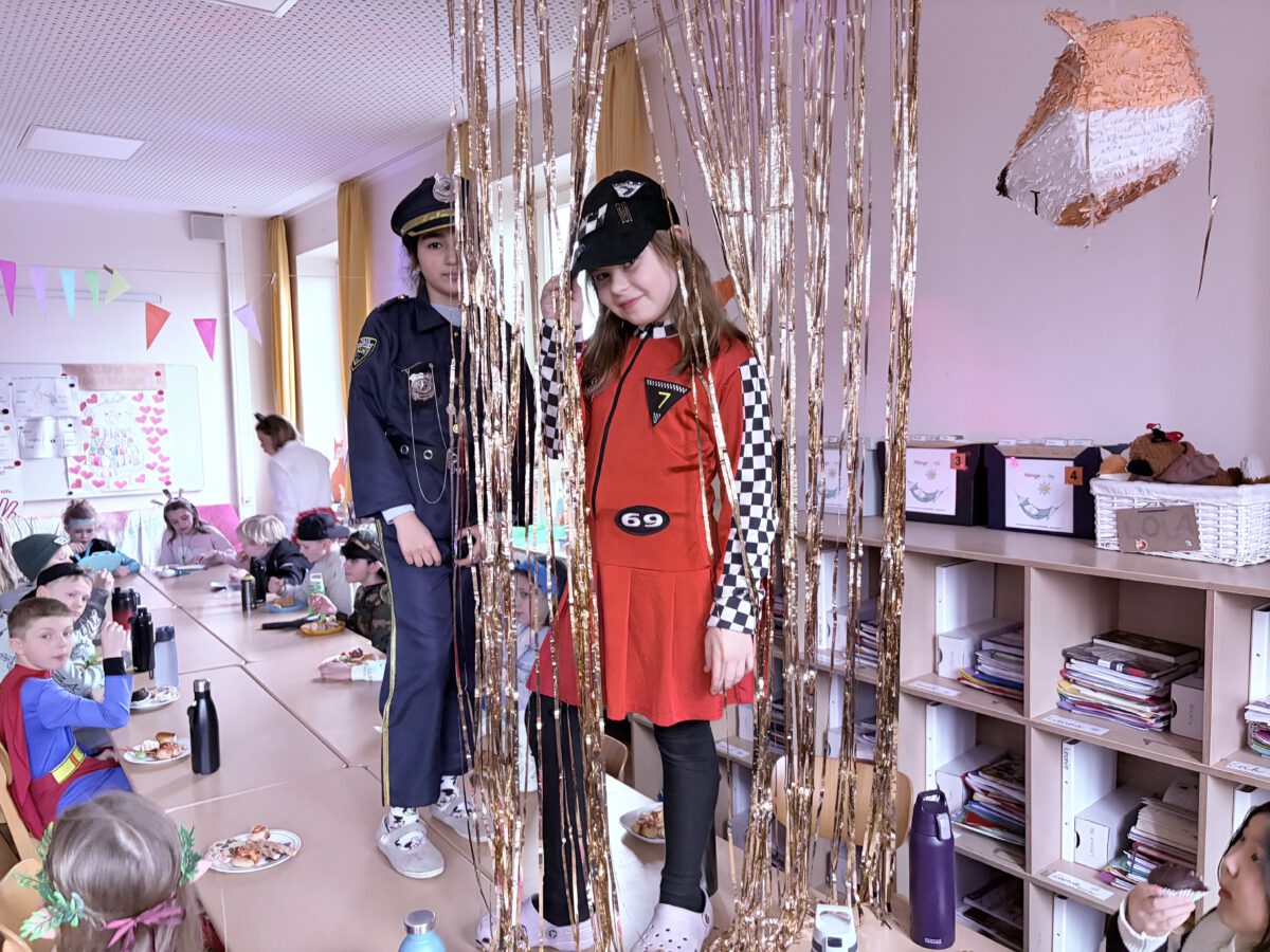 Schon früh am Morgen tummelten sich Ritter, Marienkäfer, Zebras und zahlreiche andere bunte Wesen auf dem Schulhof zum kunterbunten Treiben. Fröhlich und bester Laune feierten die Jecken der MCS in ihren Klassen Karneval. Mit viel Temperament gab es Spiele im Stuhlkreis, Foto-Sessions, Kostümwettbewerbe und Leckereien vom Karnevalsbuffet. Zur Pause schallte heitere Musik über den Schulhof und die Polonäse durch das Schulgebäude fand ihr Ende in einer tanzenden Schülerschar auf dem Hof. In der Turnhalle hatte sich eine Jury beisammen gefunden, um unter der Leitung von Herrn Philipp die besten Kostüme der MCS zu küren. Am Mikrofon unterstützen ihn sehr professionell Clara und Ariana und sorgten für ausgelassene Stimmung. Am Ende tanzte Groß und Klein zur Disco. Anschließend wurde in der OGS weiter gefeiert. Das war ein rundum heiterer Tag.