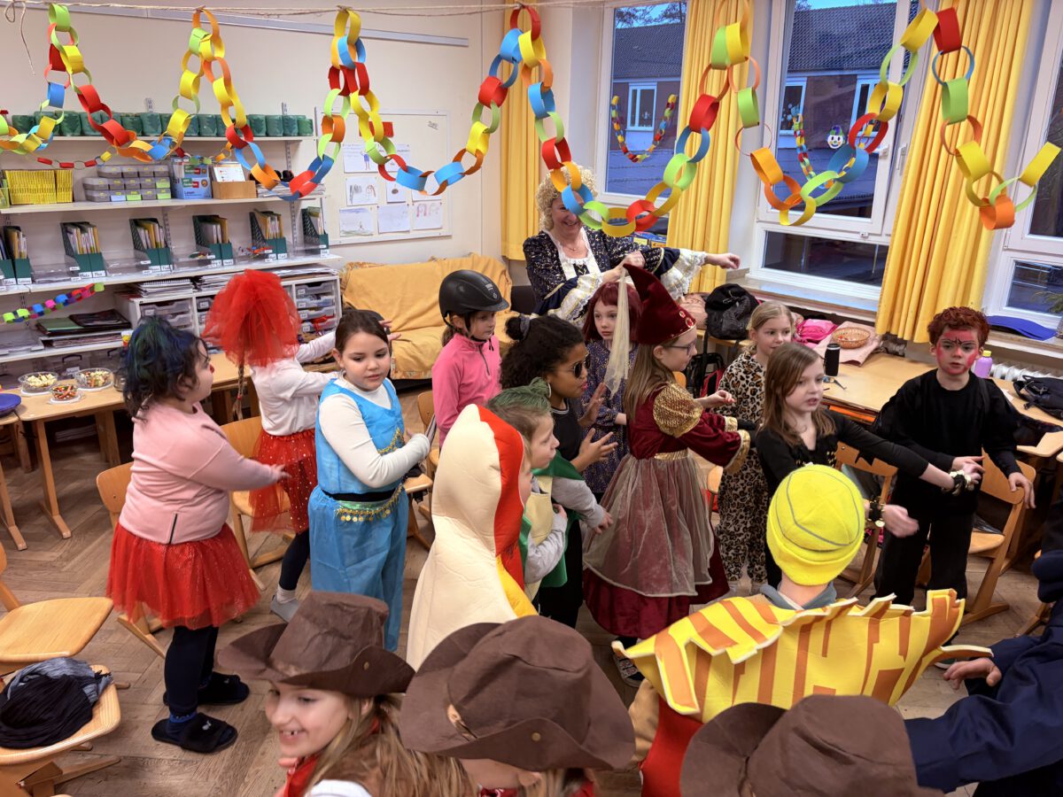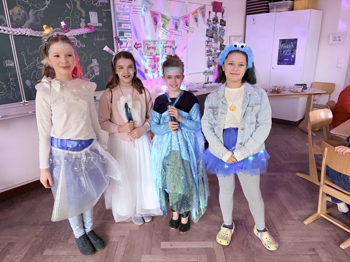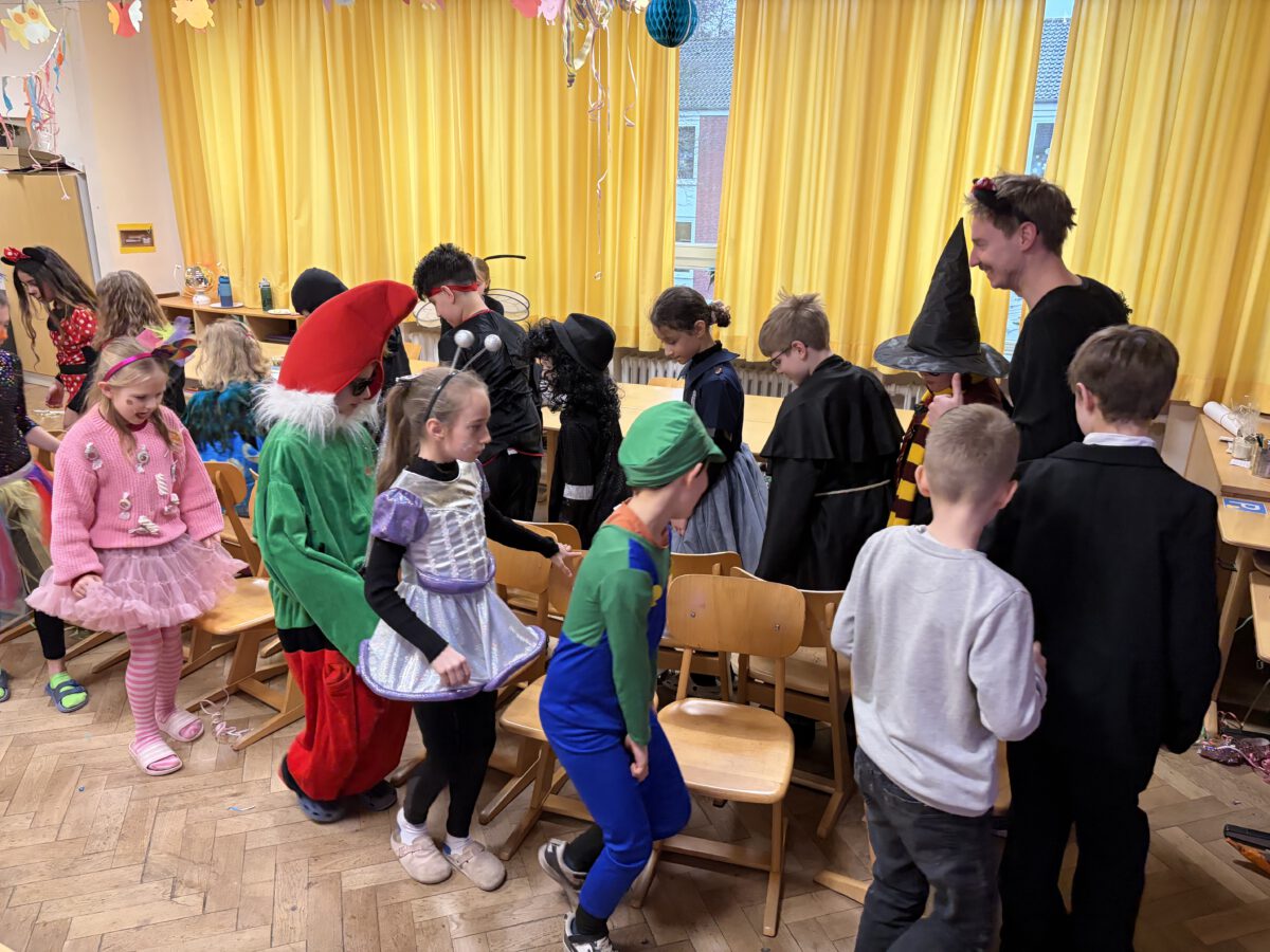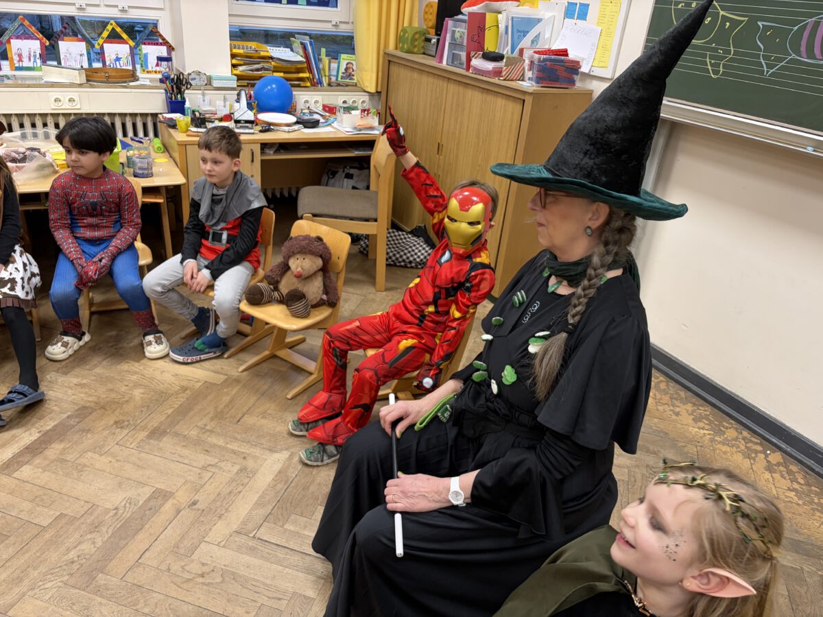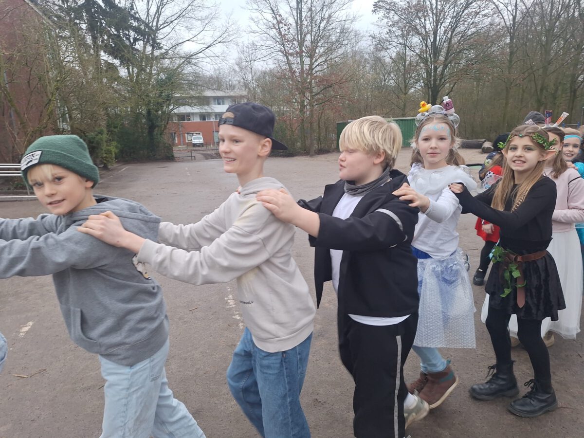 Schon früh am Morgen tummelten sich Ritter, Marienkäfer, Zebras und zahlreiche andere bunte Wesen auf dem Schulhof zum kunterbunten Treiben. Fröhlich und bester Laune feierten die Jecken der MCS in ihren Klassen Karneval. Mit viel Temperament gab es Spiele im Stuhlkreis, Foto-Sessions, Kostümwettbewerbe und Leckereien vom Karnevalsbuffet. Zur Pause schallte heitere Musik über den Schulhof und die Polonäse durch das Schulgebäude fand ihr Ende in einer tanzenden Schülerschar auf dem Hof. In der Turnhalle hatte sich eine Jury beisammen gefunden, um unter der Leitung von Herrn Philipp die besten Kostüme der MCS zu küren. Am Mikrofon unterstützen ihn sehr professionell Clara und Ariana und sorgten für ausgelassene Stimmung. Am Ende tanzte Groß und Klein zur Disco. Anschließend wurde in der OGS weiter gefeiert. Das war ein rundum heiterer Tag.