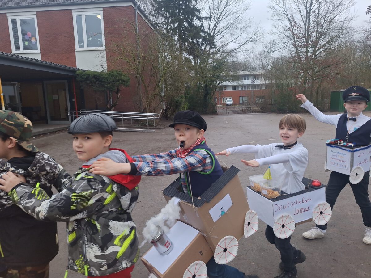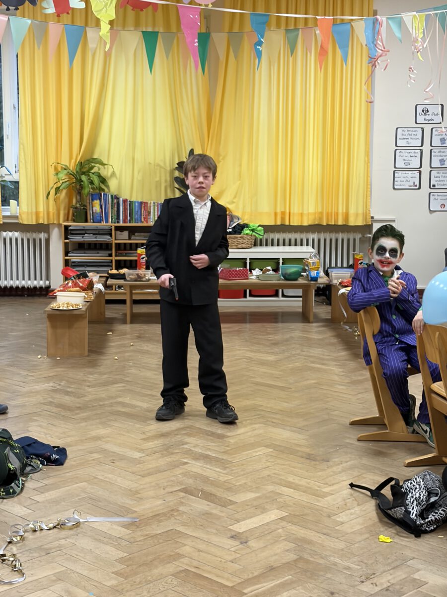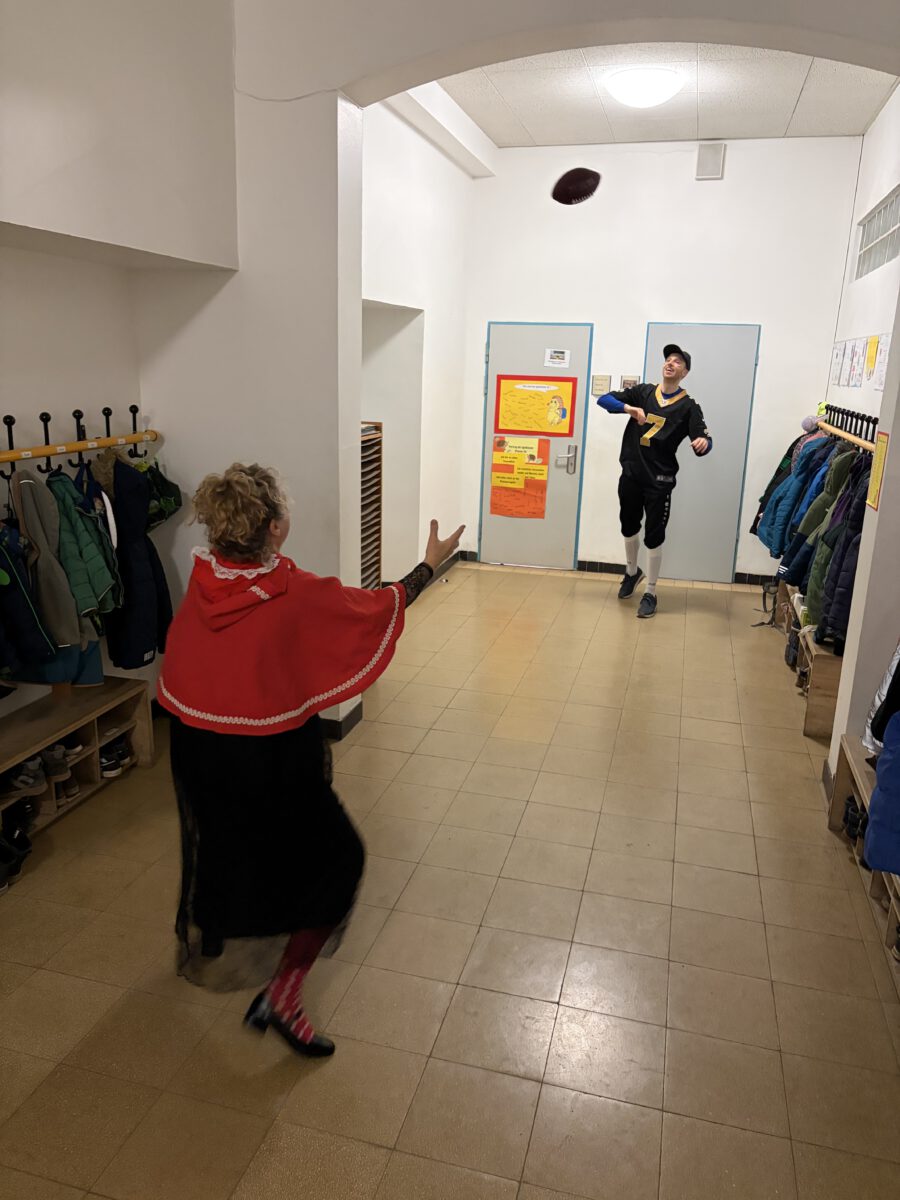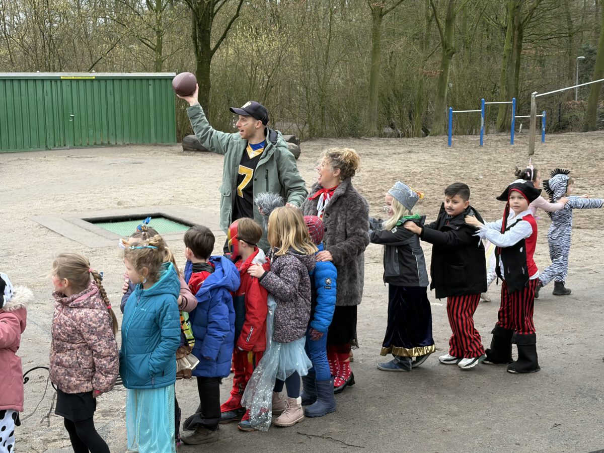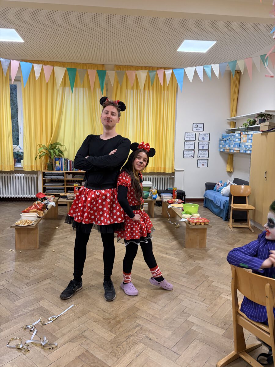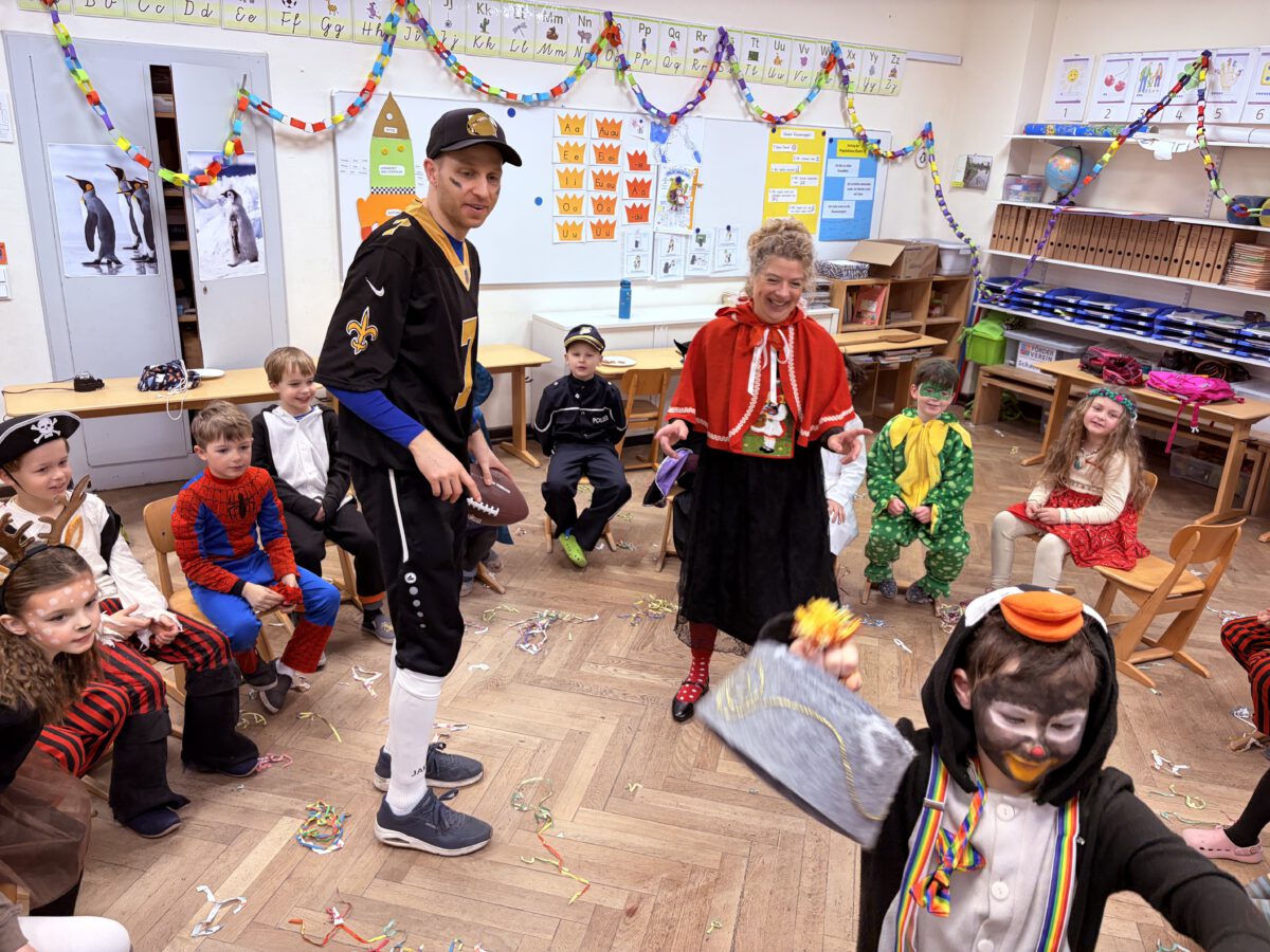 Schon früh am Morgen tummelten sich Ritter, Marienkäfer, Zebras und zahlreiche andere bunte Wesen auf dem Schulhof zum kunterbunten Treiben. Fröhlich und bester Laune feierten die Jecken der MCS in ihren Klassen Karneval. Mit viel Temperament gab es Spiele im Stuhlkreis, Foto-Sessions, Kostümwettbewerbe und Leckereien vom Karnevalsbuffet. Zur Pause schallte heitere Musik über den Schulhof und die Polonäse durch das Schulgebäude fand ihr Ende in einer tanzenden Schülerschar auf dem Hof. In der Turnhalle hatte sich eine Jury beisammen gefunden, um unter der Leitung von Herrn Philipp die besten Kostüme der MCS zu küren. Am Mikrofon unterstützen ihn sehr professionell Clara und Ariana und sorgten für ausgelassene Stimmung. Am Ende tanzte Groß und Klein zur Disco. Anschließend wurde in der OGS weiter gefeiert. Das war ein rundum heiterer Tag.