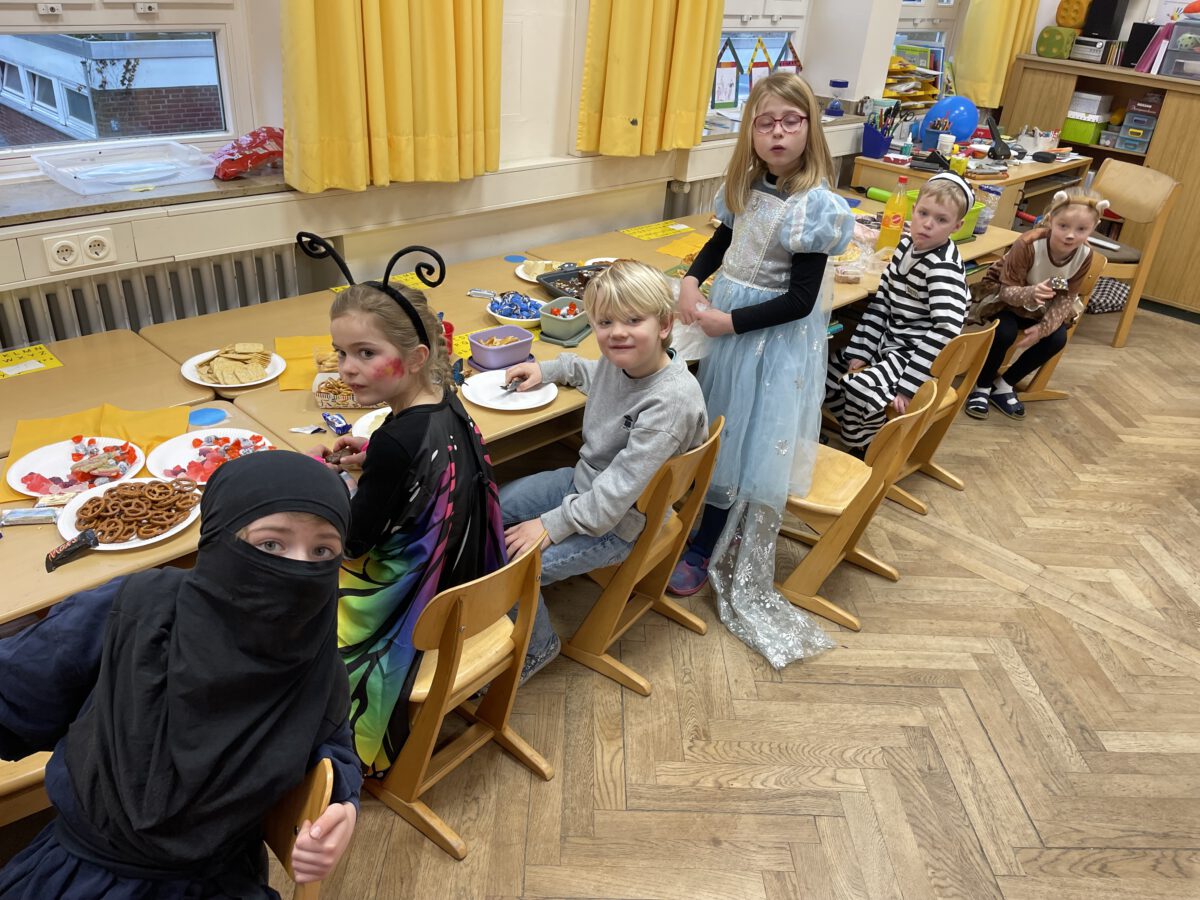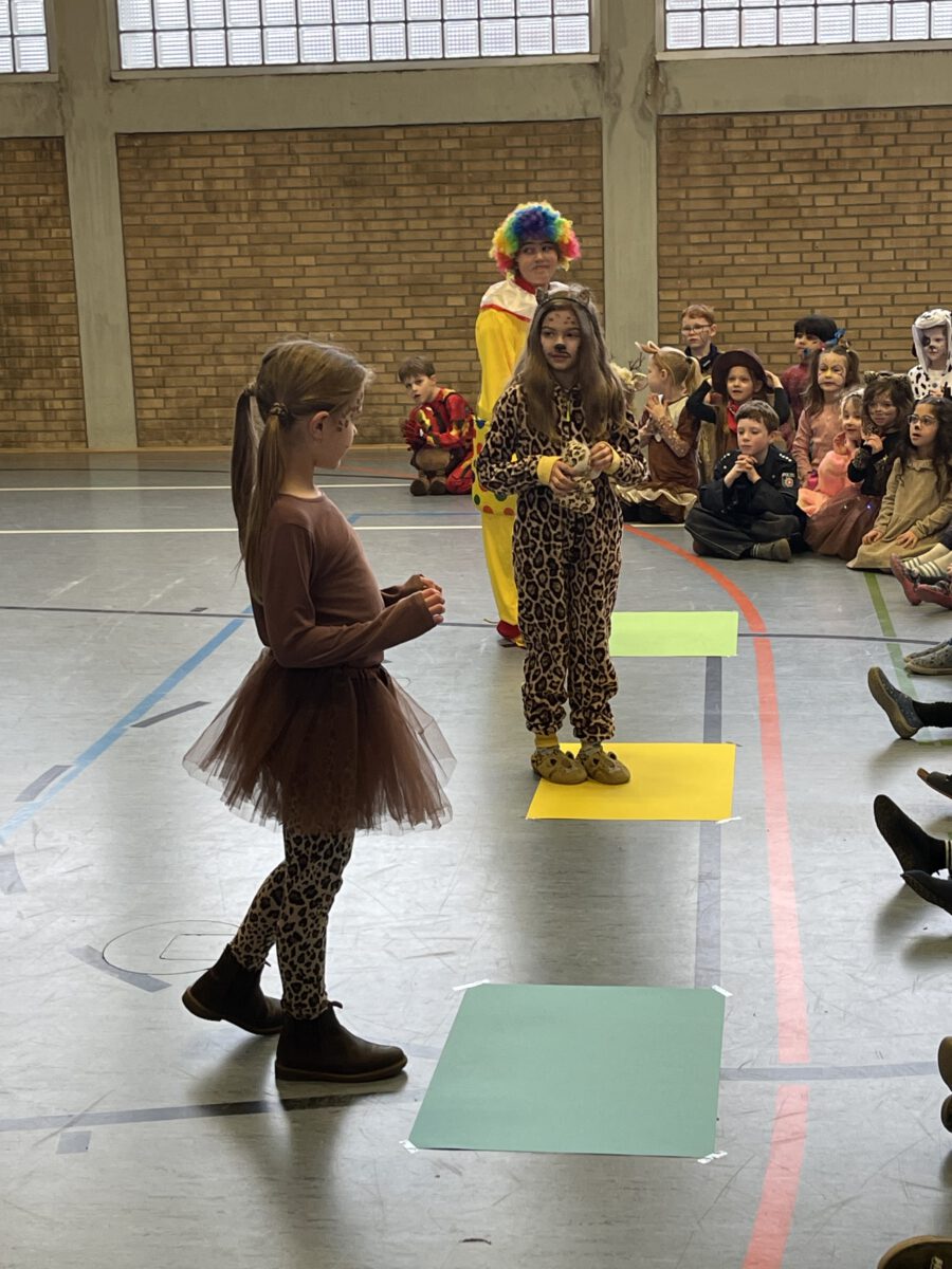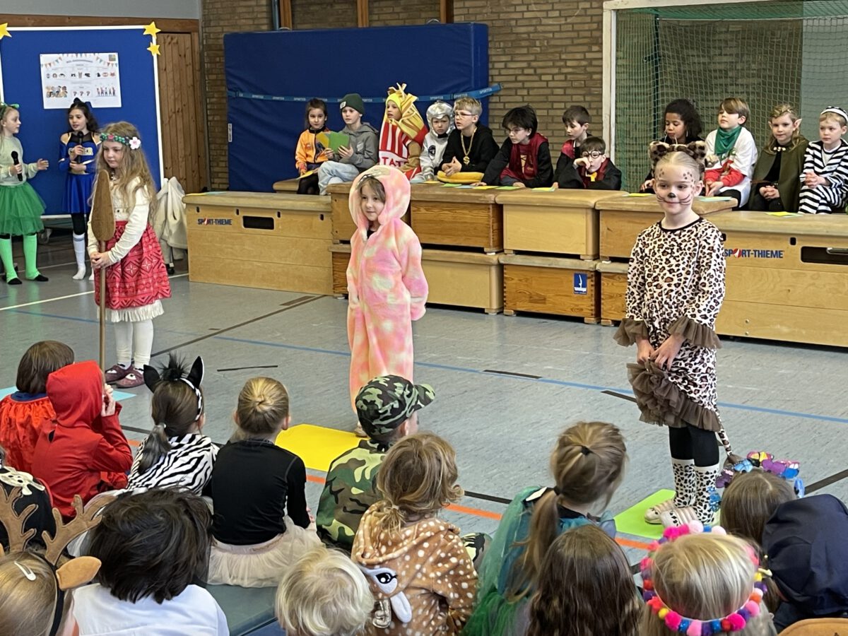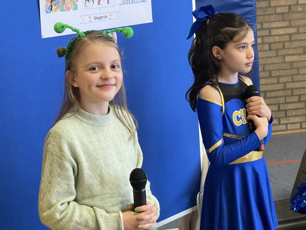 Schon früh am Morgen tummelten sich Ritter, Marienkäfer, Zebras und zahlreiche andere bunte Wesen auf dem Schulhof zum kunterbunten Treiben. Fröhlich und bester Laune feierten die Jecken der MCS in ihren Klassen Karneval. Mit viel Temperament gab es Spiele im Stuhlkreis, Foto-Sessions, Kostümwettbewerbe und Leckereien vom Karnevalsbuffet. Zur Pause schallte heitere Musik über den Schulhof und die Polonäse durch das Schulgebäude fand ihr Ende in einer tanzenden Schülerschar auf dem Hof. In der Turnhalle hatte sich eine Jury beisammen gefunden, um unter der Leitung von Herrn Philipp die besten Kostüme der MCS zu küren. Am Mikrofon unterstützen ihn sehr professionell Clara und Ariana und sorgten für ausgelassene Stimmung. Am Ende tanzte Groß und Klein zur Disco. Anschließend wurde in der OGS weiter gefeiert. Das war ein rundum heiterer Tag.