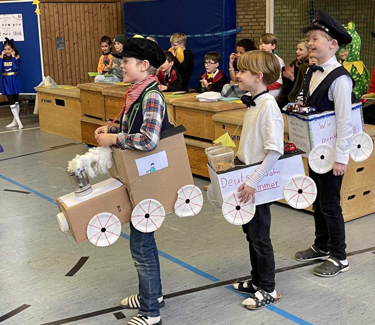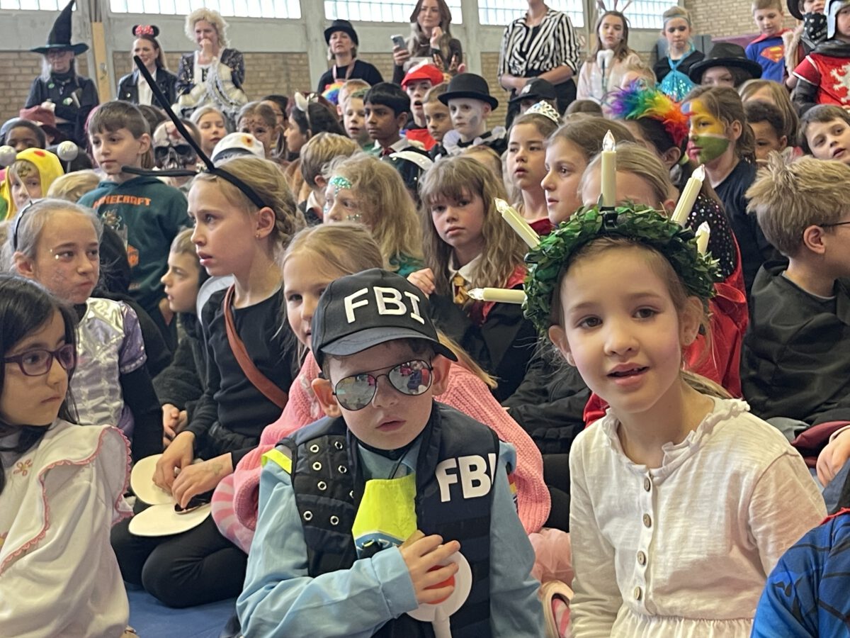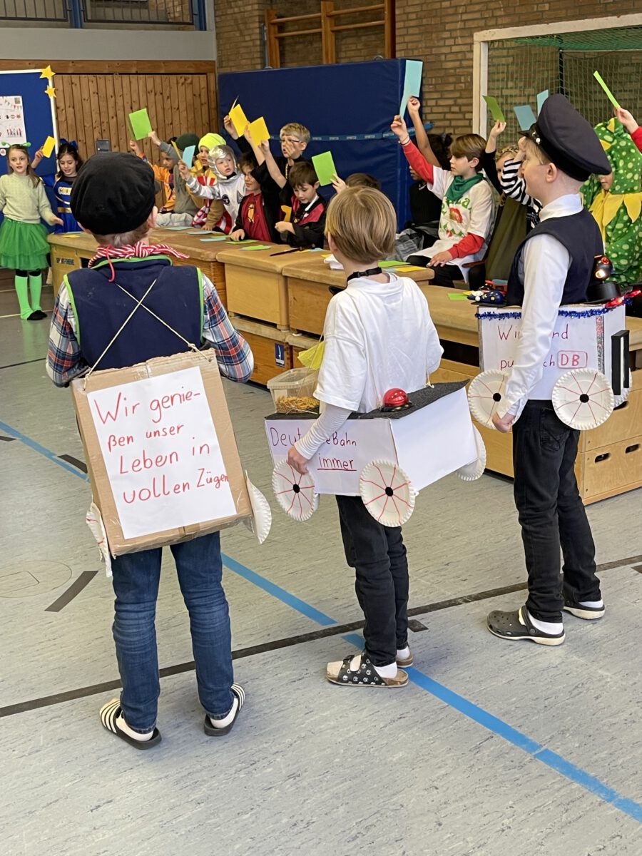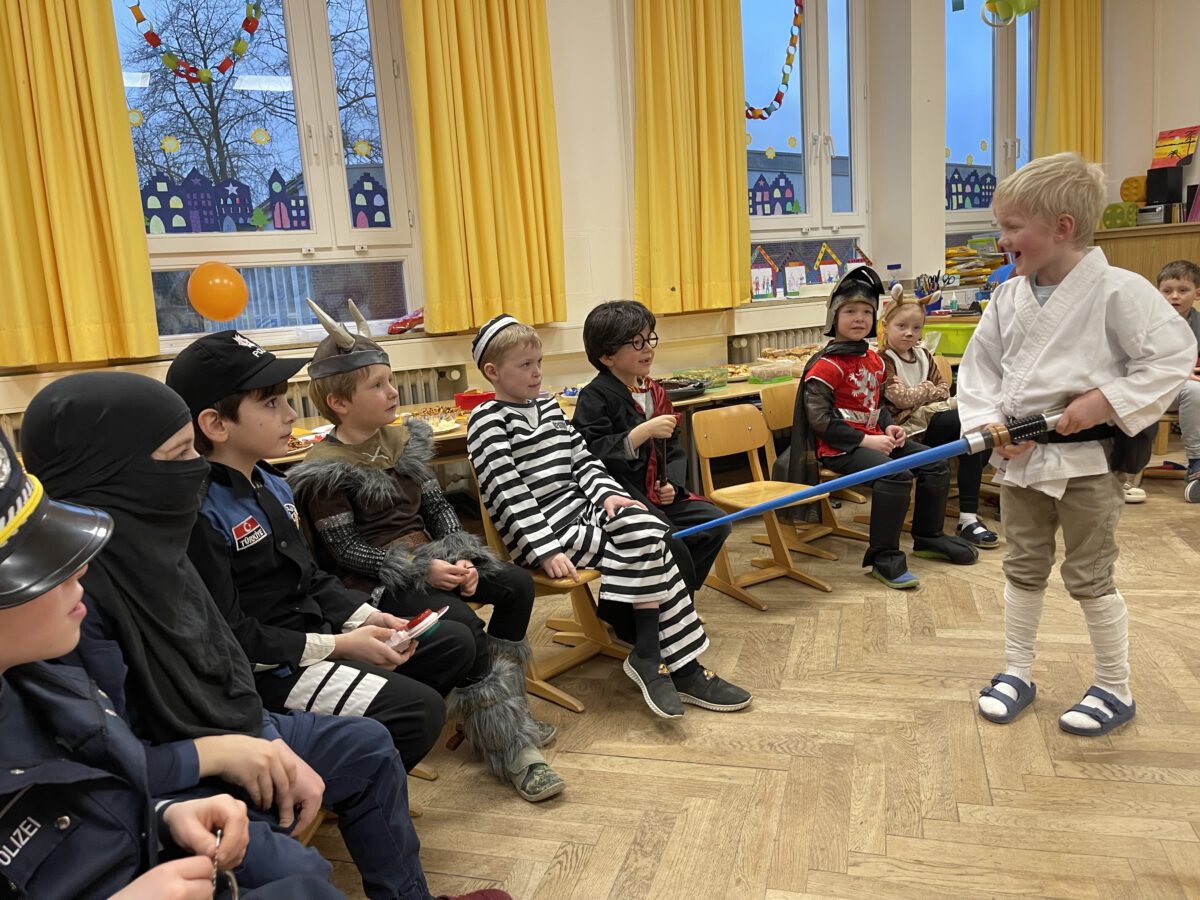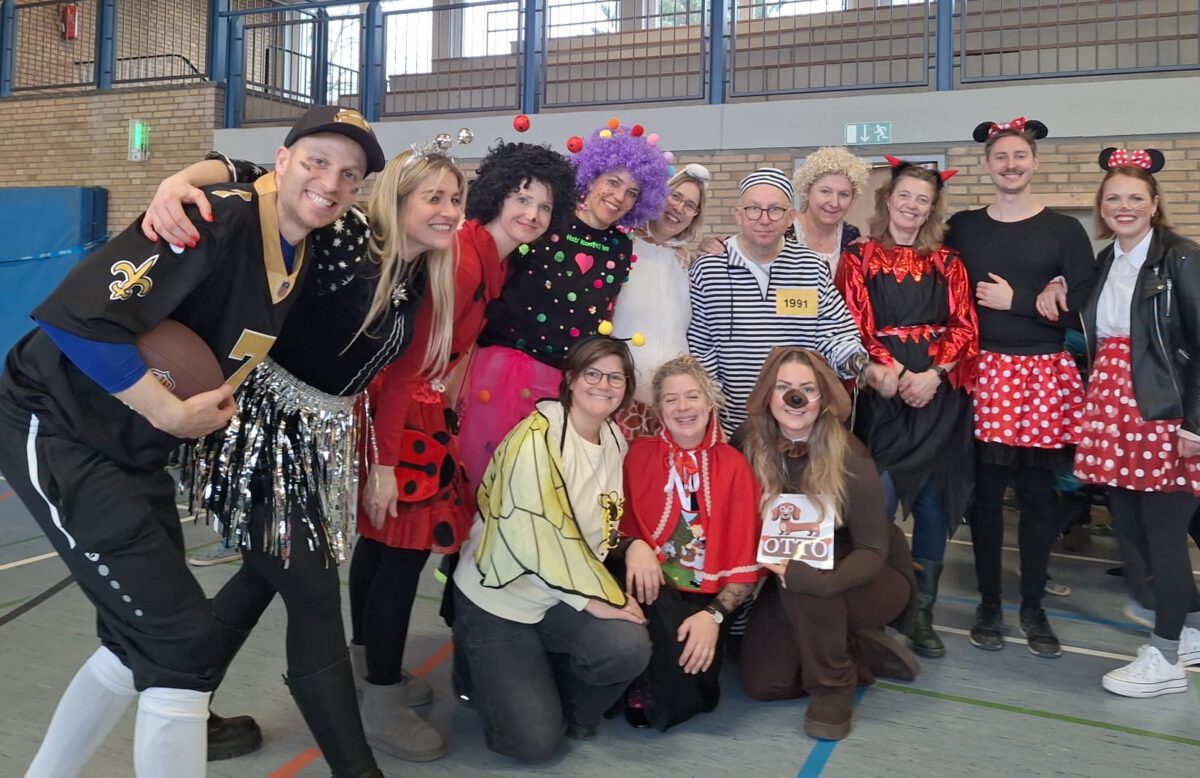 Schon früh am Morgen tummelten sich Ritter, Marienkäfer, Zebras und zahlreiche andere bunte Wesen auf dem Schulhof zum kunterbunten Treiben. Fröhlich und bester Laune feierten die Jecken der MCS in ihren Klassen Karneval. Mit viel Temperament gab es Spiele im Stuhlkreis, Foto-Sessions, Kostümwettbewerbe und Leckereien vom Karnevalsbuffet. Zur Pause schallte heitere Musik über den Schulhof und die Polonäse durch das Schulgebäude fand ihr Ende in einer tanzenden Schülerschar auf dem Hof. In der Turnhalle hatte sich eine Jury beisammen gefunden, um unter der Leitung von Herrn Philipp die besten Kostüme der MCS zu küren. Am Mikrofon unterstützen ihn sehr professionell Clara und Ariana und sorgten für ausgelassene Stimmung. Am Ende tanzte Groß und Klein zur Disco. Anschließend wurde in der OGS weiter gefeiert. Das war ein rundum heiterer Tag.