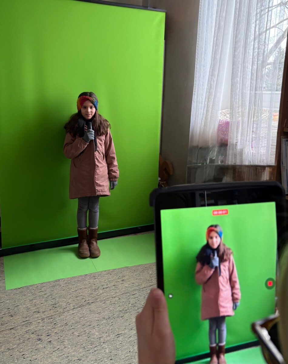 Die Drittklässler haben im Englischunterricht bei Frau Lasenga gezeigt, dass sie echte Wetter-Expertinnen und -Experten sind! Bevor es vor die Kamera ging lernten die Kinder, das Wetter auf Englisch zu beschreiben – von „sunny“ über „rainy“ bis „stormy“. Dabei wurden fleißig Redewendungen und die richtige Aussprache geübt. Nun hieß es „Action!“: Vor einem Green Screen schlüpften die Kinder in die Rolle von Wettermoderatorinnen und Wettermoderatoren und präsentierten ihre selbst geschriebenen Berichte aus verschiedenen Teilen der Welt. Mit der App iMovie wurden anschließend passende Hintergründe, Bilder und Effekte eingefügt – und schon entstanden kleine Wetterfilme. Dabei hatten alle riesigen Spaß und hinterließen einen Hauch von „TV-Studio-Feeling“ in unseren Klassenzimmern. Wir sind gespannt, ob die Welt bald täglich ihre Wetter-News von unseren Dackeln und Raben bekommt!