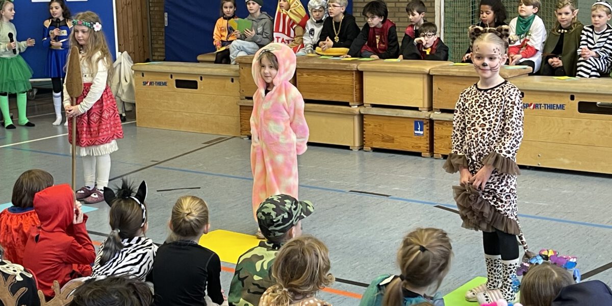 Schon früh am Morgen tummelten sich Ritter, Marienkäfer, Zebras und zahlreiche andere bunte Wesen auf dem Schulhof zum kunterbunten Treiben. Fröhlich und bester Laune feierten die Jecken der MCS in ihren Klassen Karneval. Mit viel Temperament gab es Spiele im Stuhlkreis, Foto-Sessions, Kostümwettbewerbe und Leckereien vom Karnevalsbuffet. Zur Pause schallte heitere Musik über den Schulhof und die Polonäse durch das Schulgebäude fand ihr Ende in einer tanzenden Schülerschar auf dem Hof. In der Turnhalle hatte sich eine Jury beisammen gefunden, um unter der Leitung von Herrn Philipp die besten Kostüme der MCS zu küren. Am Mikrofon unterstützen ihn sehr professionell Clara und Ariana und sorgten für ausgelassene Stimmung. Am Ende tanzte Groß und Klein zur Disco. Anschließend wurde in der OGS weiter gefeiert. Das war ein rundum heiterer Tag.