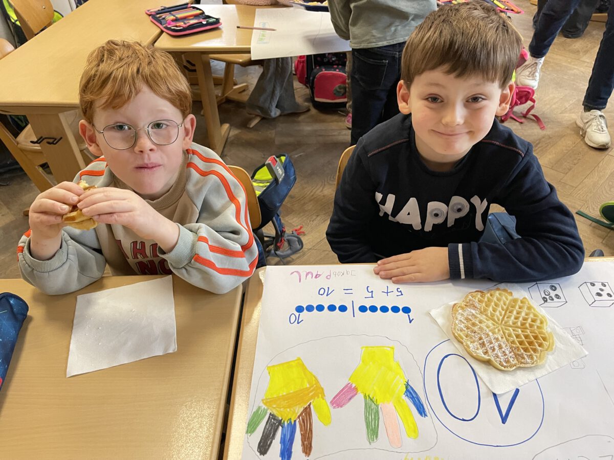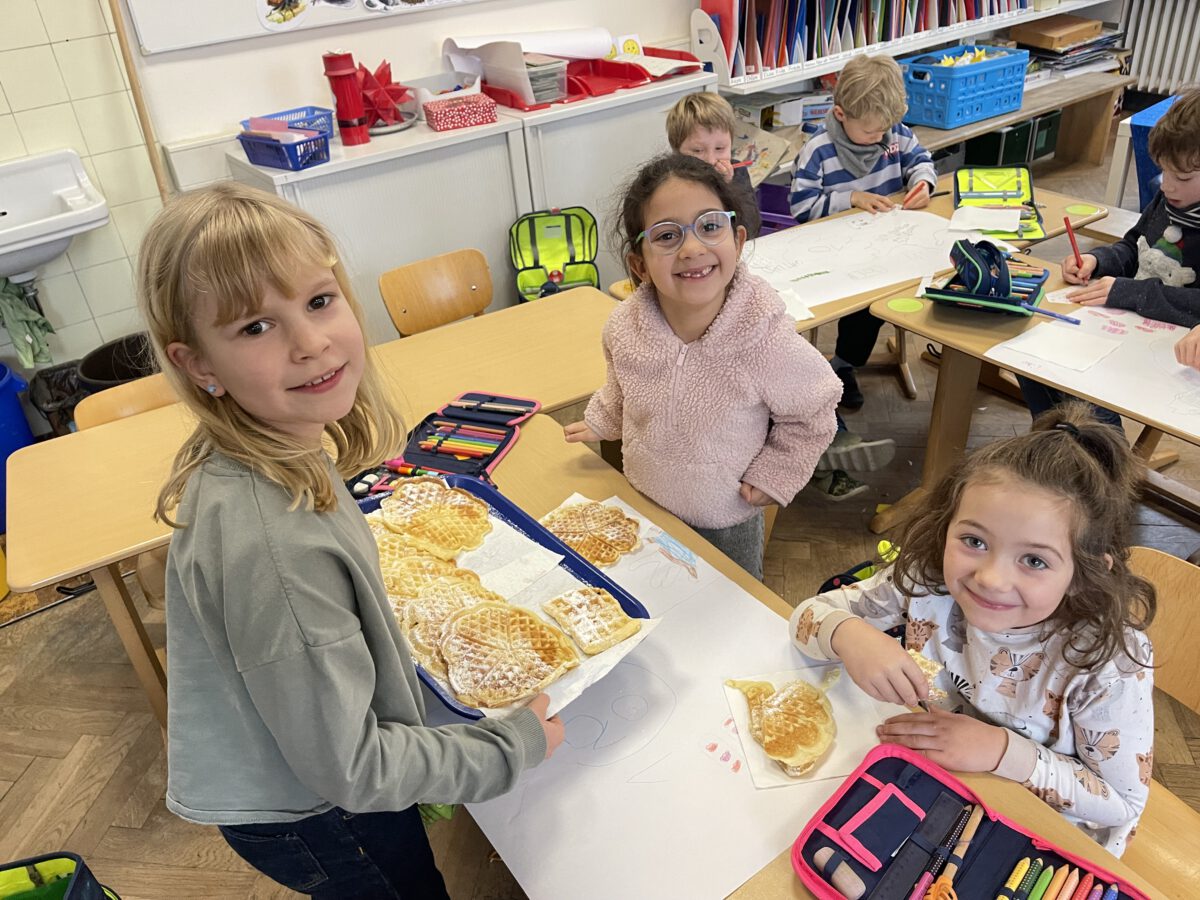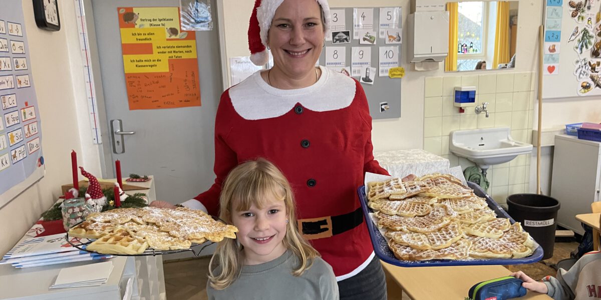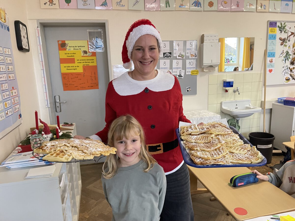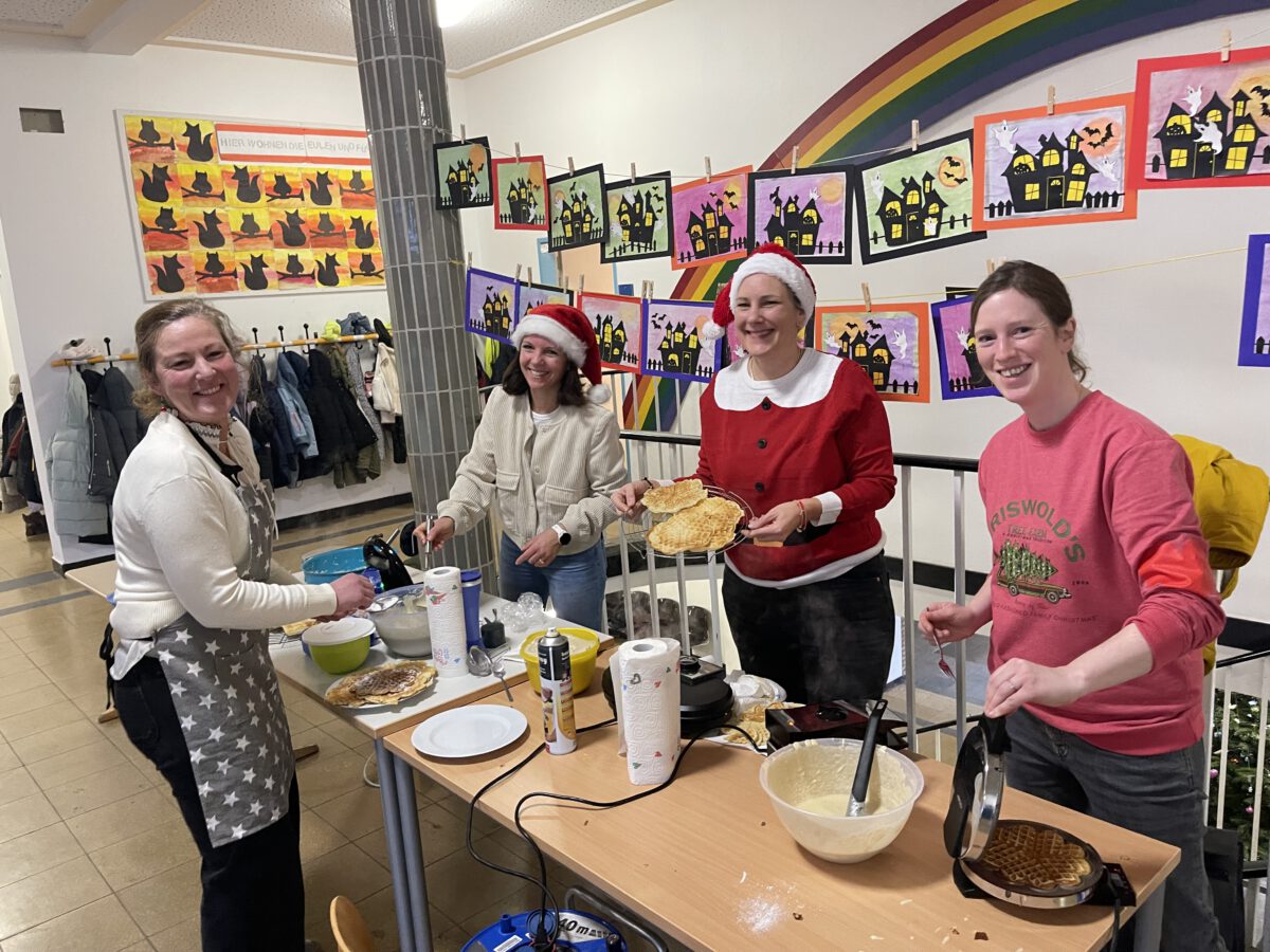 Am vorletzten Schultag verwöhnten die Vertreterinnen und Vertreter der Schulpflegschaft die gesamte Schulgemeinschaft mit Waffeln. In den Fluren dampften die Waffeleisen auf Hochtouren und der köstliche Duft füllte die Schule und brachte Weihnachtsfreude zu den Kindern. Welch köstliche Leckerei! Ganz herzlichen Dank für die zauberhafte Überraschung!