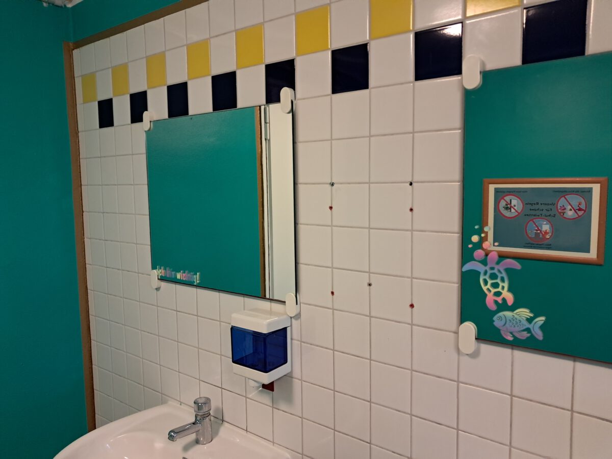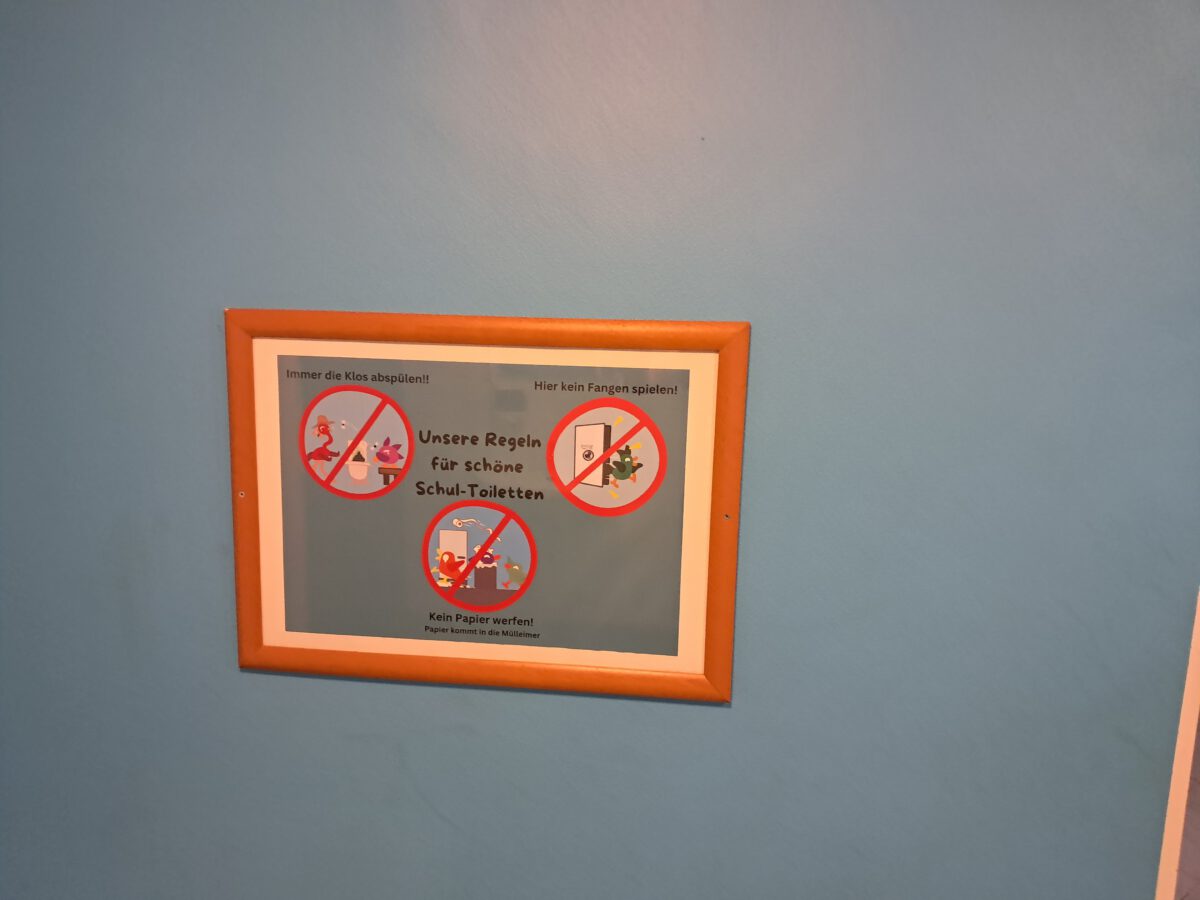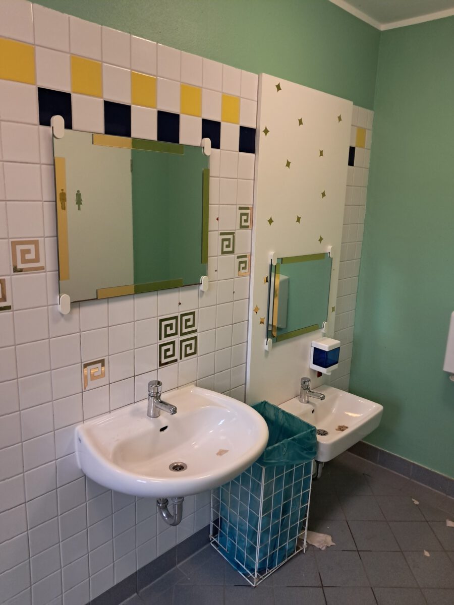 Unter der Leitung von Frau Keuchel, Frau Winter und Herrn Philipp waren die Kinder der einzelnen Klasse vor den Sommerferien kreativ und aktiv. Es wurde gebastelt, gemalt, geklebt, laminiert. Anschließend wurden die Toiletten mit all den schönen Sachen dekoriert. Das Ergebnis kann sich sehen lassen, die Kinder sagen auf diese Toiletten gehen Sie nun gerne. Jetzt ist es an uns allen die Toiletten so schön zu erhalten. Vielen Dank noch mal an alle die die Idee auf den Weg gebracht und uns so tatkräftig unterstützt haben!