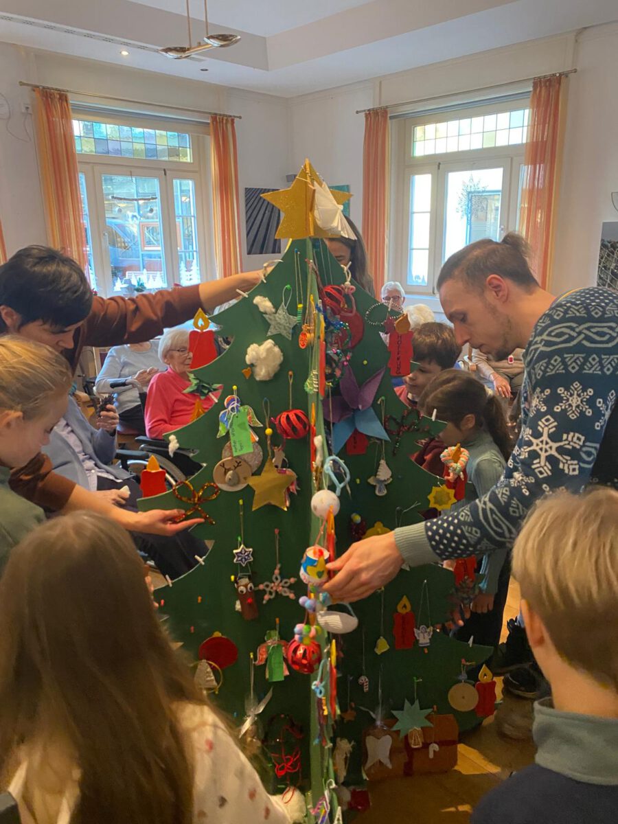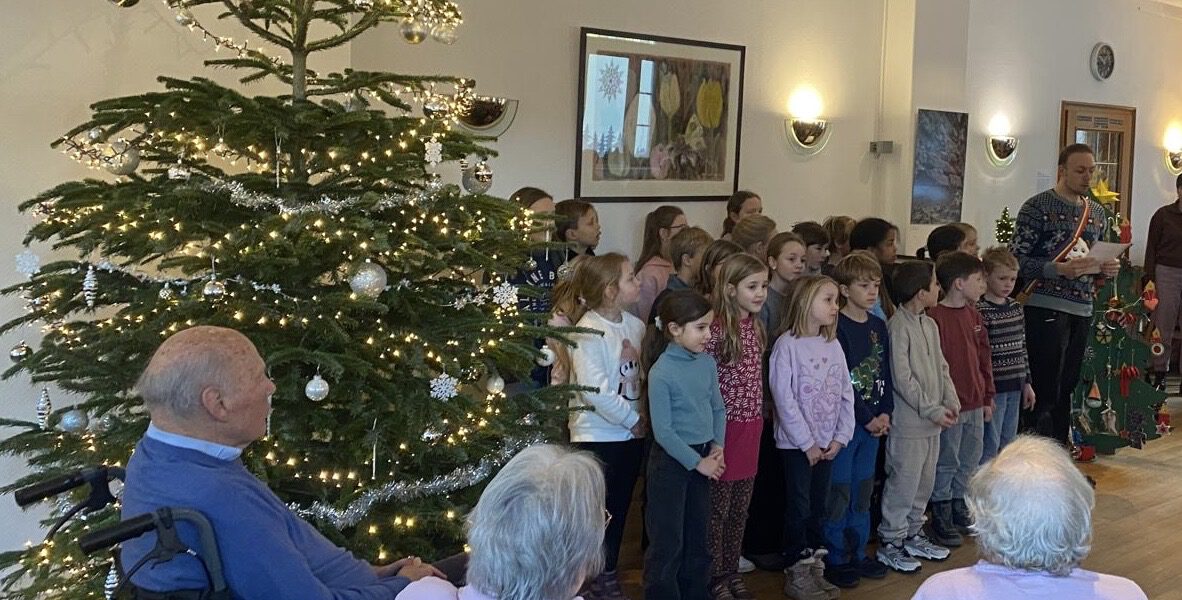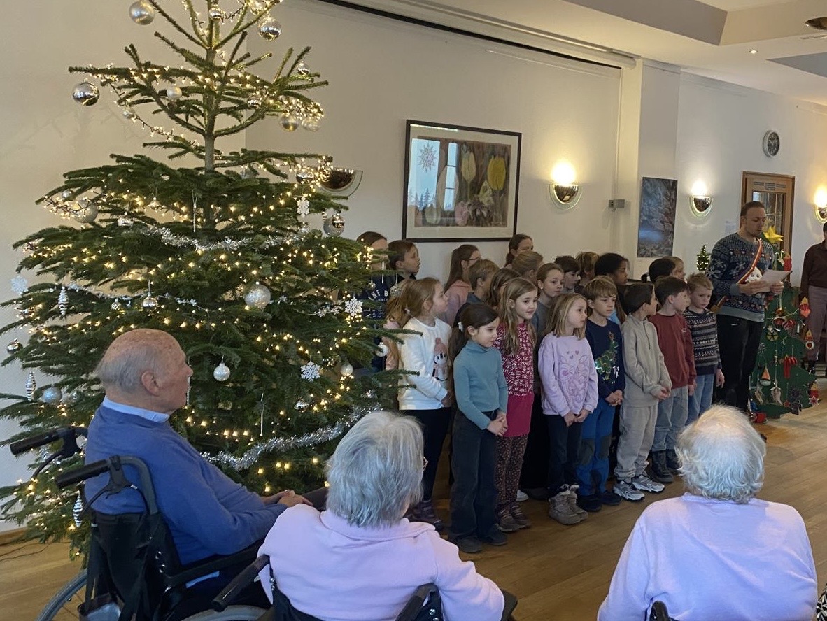 Am Dienstag, den 16. Dezember, machte sich die SV auf, um nach langer Planung und Organisation die Weihnachtsaktion für den Handorfer Hof in die Tat umzusetzen. Der Weihnachtsbaum quoll über vor Basteleien und Geschenken, welche die Eltern und Kinder in die Schule gebracht hatten. Im Seniorenheim wurde die Kinderschar warm und herzlich empfangen. Die Bewohnerinnen und Bewohner saßen als Empfang im Halbkreis und lauschten freudig den Gesängen der SV: „Macht euch bereit“, „Alle Jahre wieder“ und „Ein heller Stern hat in der Nacht“ erklangen durch die Räumlichkeiten. Gerne sang das Publikum fleißig mit. Anschließend verteilten die Kinder die selbstgebastelten Geschenke des Baumes und bereiteten so ausgiebig Weihnachtsfreude. Man konnte sehen, wie jedes Mal ein Strahlen in die Gesichter der Beschenkten gezaubert wurde. Am Ende gab es noch ein süßes Dankeschön vom Handorfer Hof an die Kinder. Stolz und mit Frohsinn im Herzen ging es wieder zurück zur MCS.