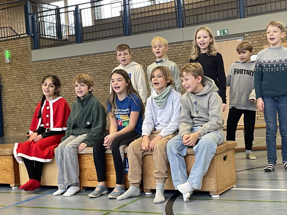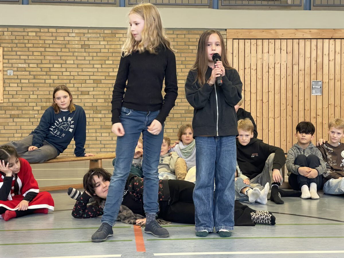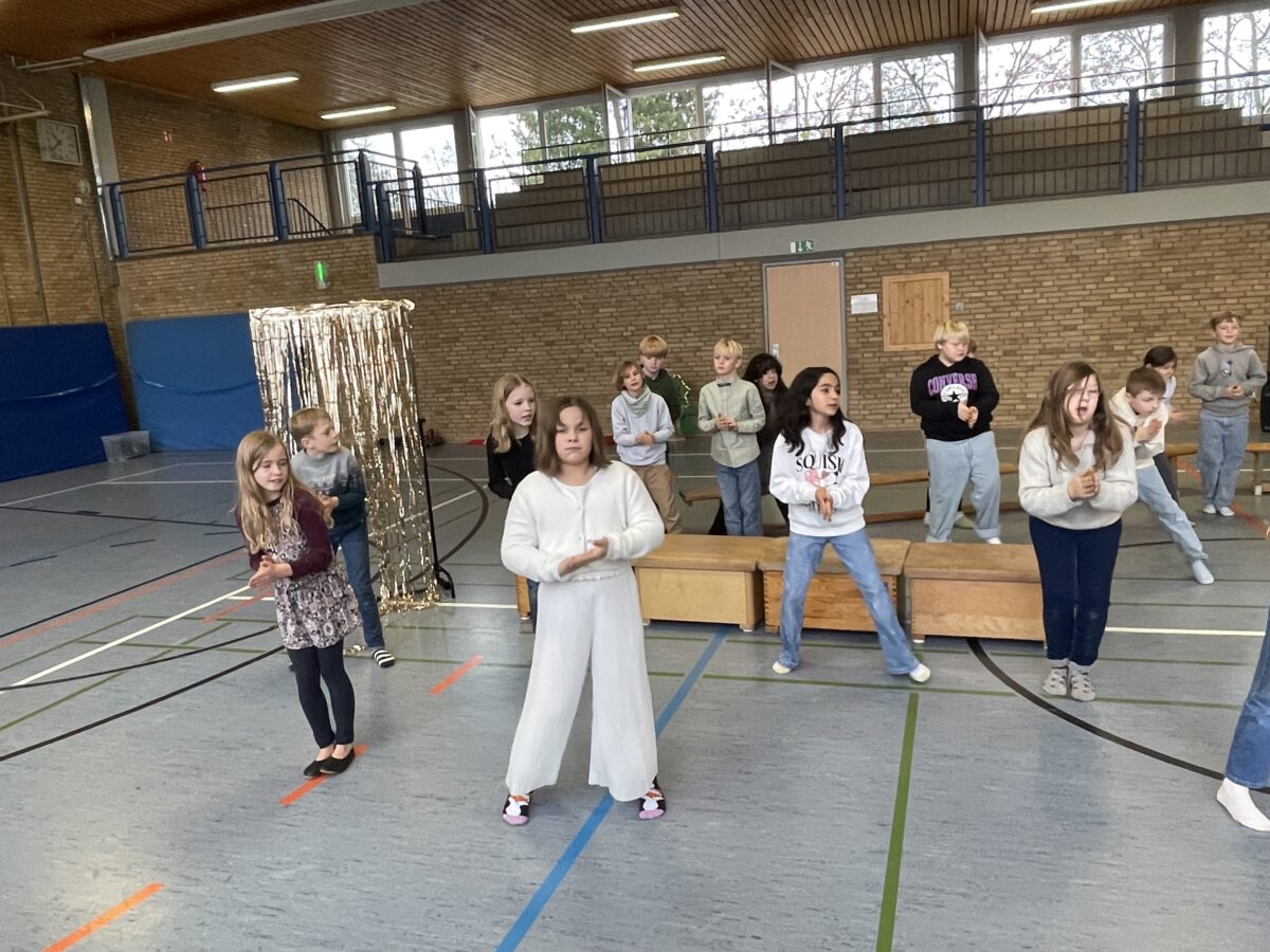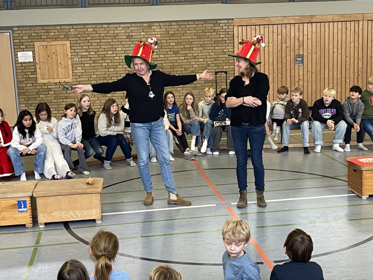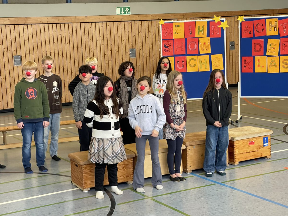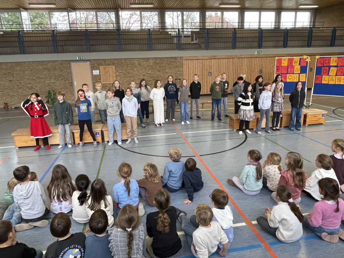 Am letzten Schultag begeisterte die Klasse 4b die MCS mit ihrer lustigen, farbenfrohen und kreativen Weihnachtsshow. Mit Musik, Tanz, Zauberei, Dichtkunst und Theaterspiel bescherten sie allen Anwesenden in der Turnhalle einen wundervollen Schulabschluss. Belohnt wurden die tollen Darstellerinnen und Darsteller mit einem tosenden Applaus. Was für eine grandiose Show! Anschließend lüftete der Weihnachtswichtel Matti noch das Geheimnis um die Rätselwand, welche die Kinder durch die Adventszeit hindurch lösen mussten. So freuten sich alle beschwingt über eine kleine leckere Schoko-Überraschung am Ausgang auf ihrem Weg in die Weihnachtsferien.