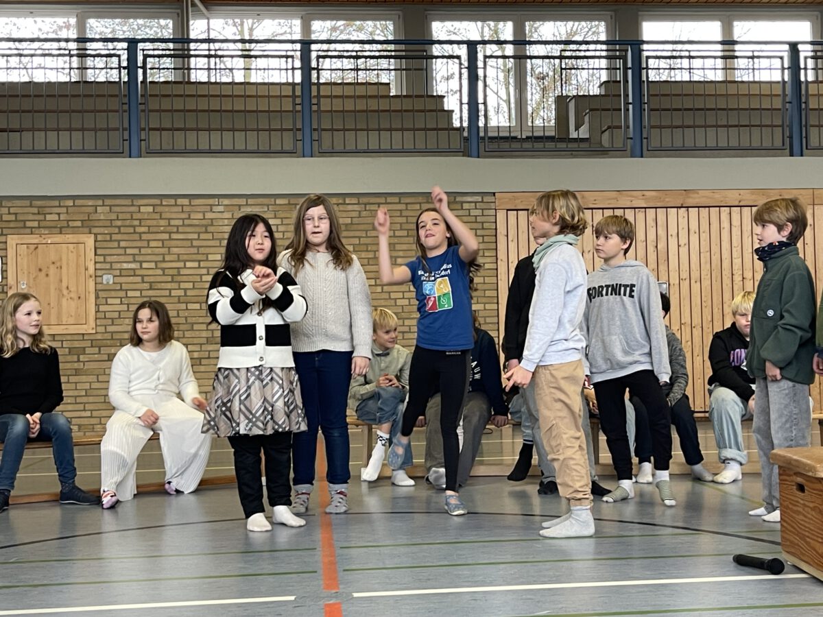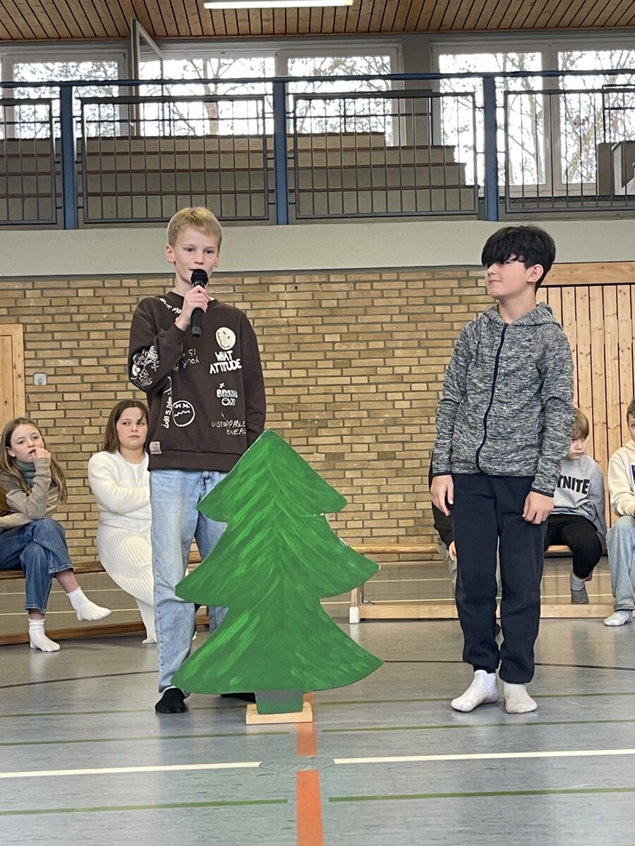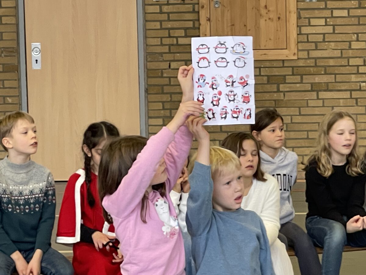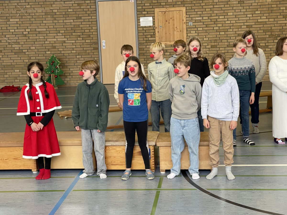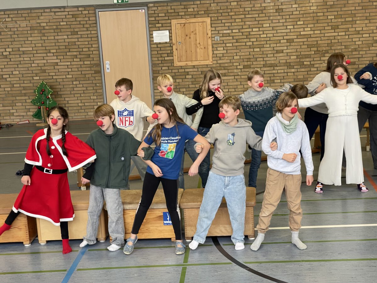 Am letzten Schultag begeisterte die Klasse 4b die MCS mit ihrer lustigen, farbenfrohen und kreativen Weihnachtsshow. Mit Musik, Tanz, Zauberei, Dichtkunst und Theaterspiel bescherten sie allen Anwesenden in der Turnhalle einen wundervollen Schulabschluss. Belohnt wurden die tollen Darstellerinnen und Darsteller mit einem tosenden Applaus. Was für eine grandiose Show! Anschließend lüftete der Weihnachtswichtel Matti noch das Geheimnis um die Rätselwand, welche die Kinder durch die Adventszeit hindurch lösen mussten. So freuten sich alle beschwingt über eine kleine leckere Schoko-Überraschung am Ausgang auf ihrem Weg in die Weihnachtsferien.