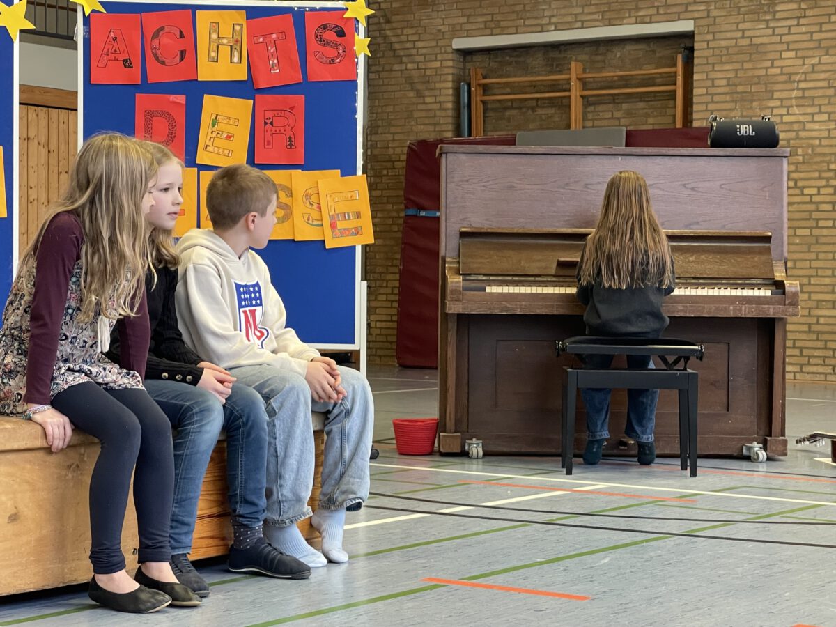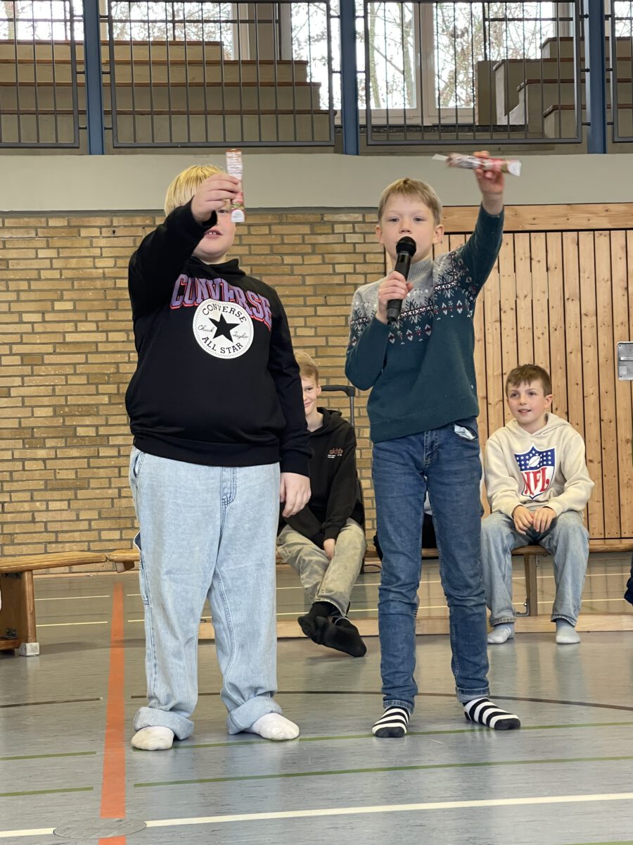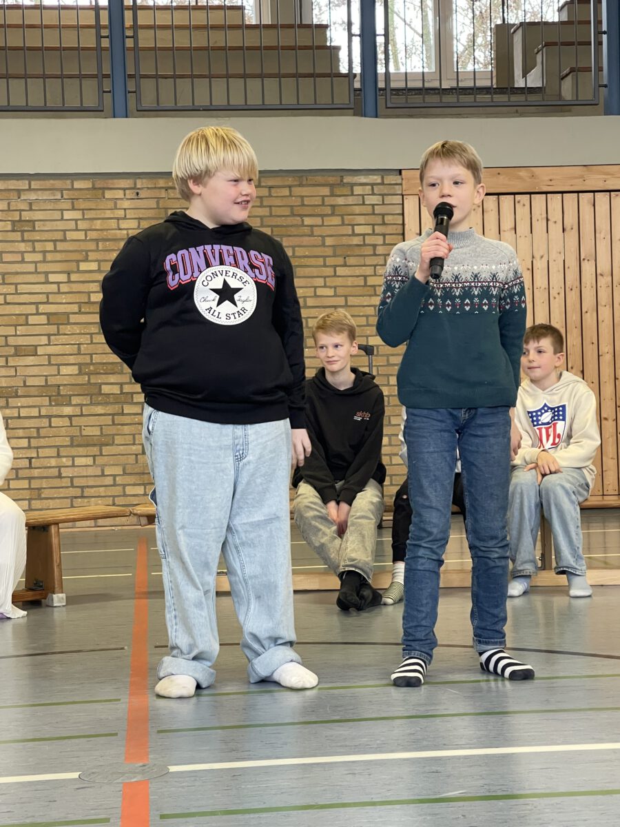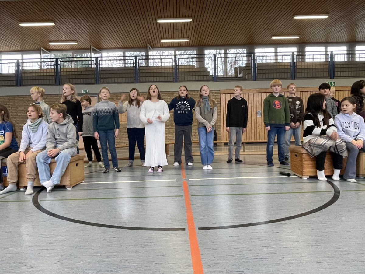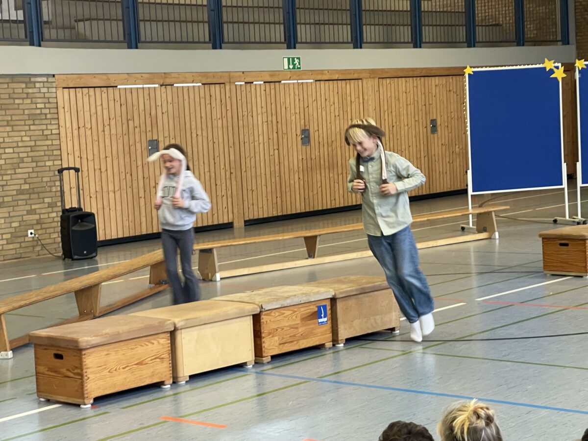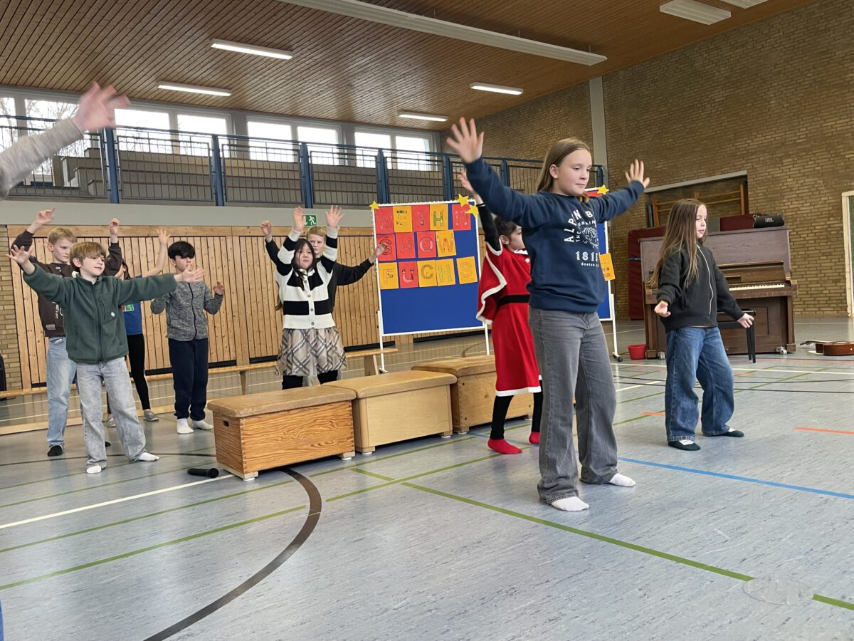 Am letzten Schultag begeisterte die Klasse 4b die MCS mit ihrer lustigen, farbenfrohen und kreativen Weihnachtsshow. Mit Musik, Tanz, Zauberei, Dichtkunst und Theaterspiel bescherten sie allen Anwesenden in der Turnhalle einen wundervollen Schulabschluss. Belohnt wurden die tollen Darstellerinnen und Darsteller mit einem tosenden Applaus. Was für eine grandiose Show! Anschließend lüftete der Weihnachtswichtel Matti noch das Geheimnis um die Rätselwand, welche die Kinder durch die Adventszeit hindurch lösen mussten. So freuten sich alle beschwingt über eine kleine leckere Schoko-Überraschung am Ausgang auf ihrem Weg in die Weihnachtsferien.